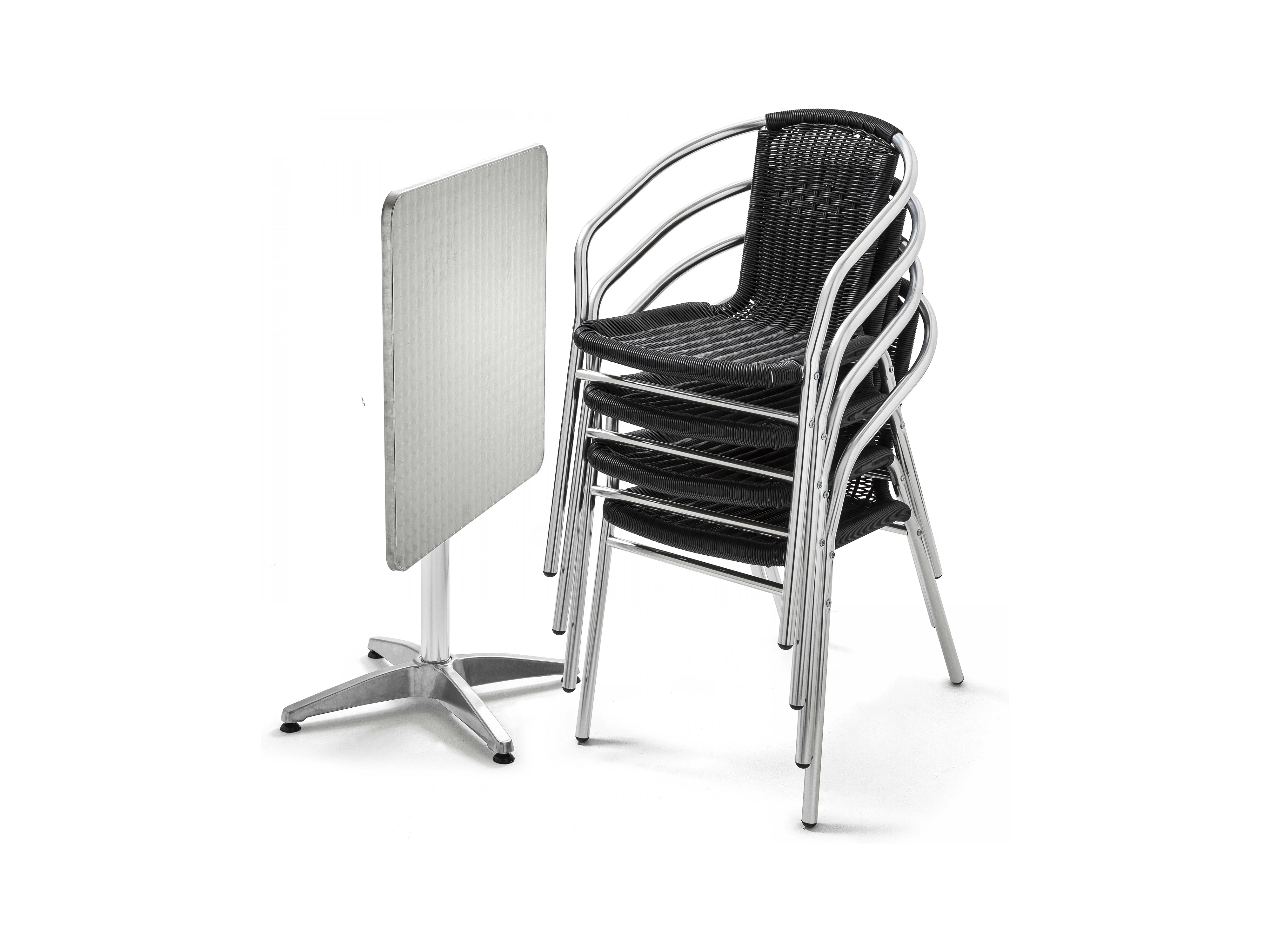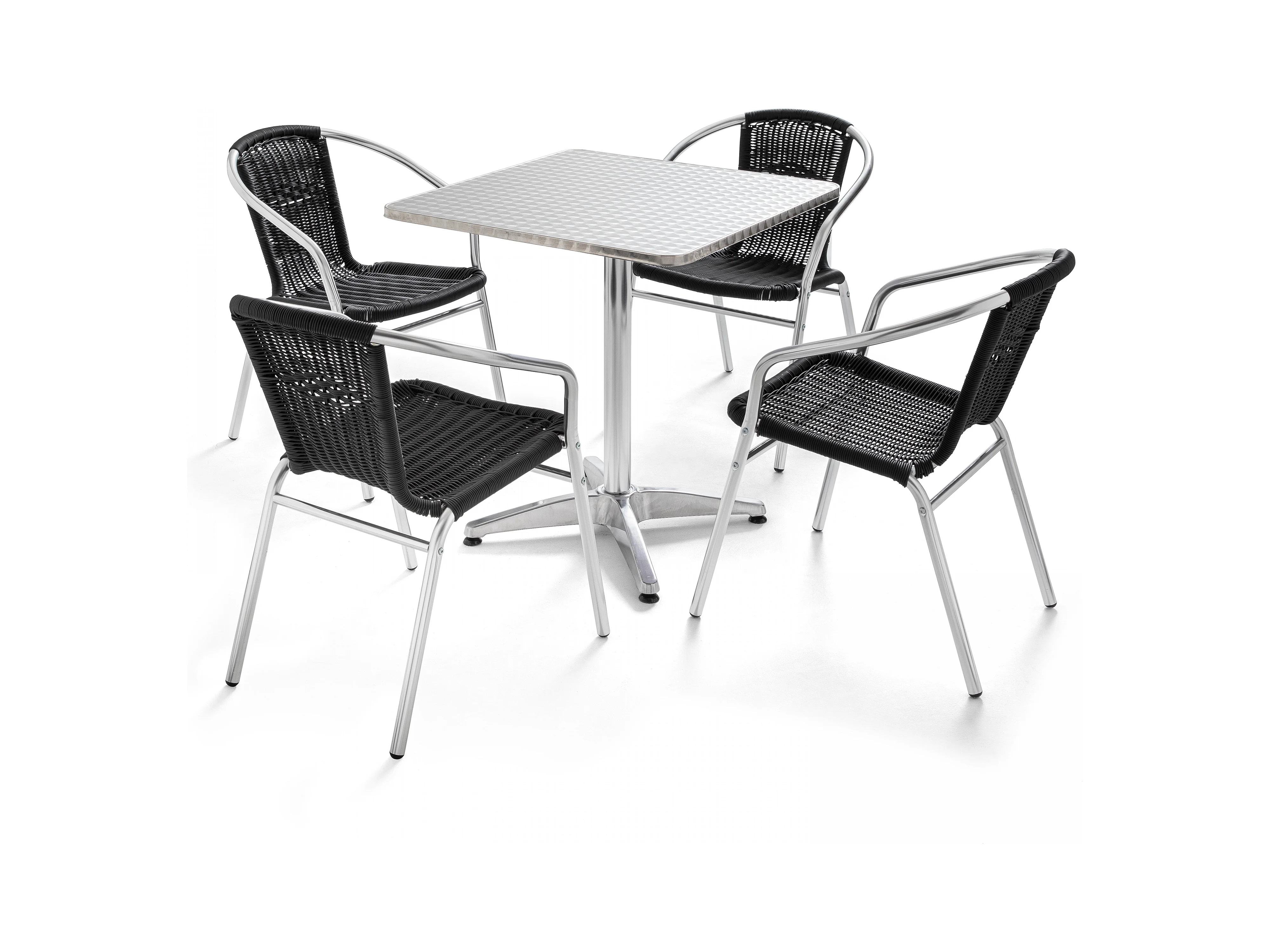 Vierkante tafel van en 4 zwarte stoelen
