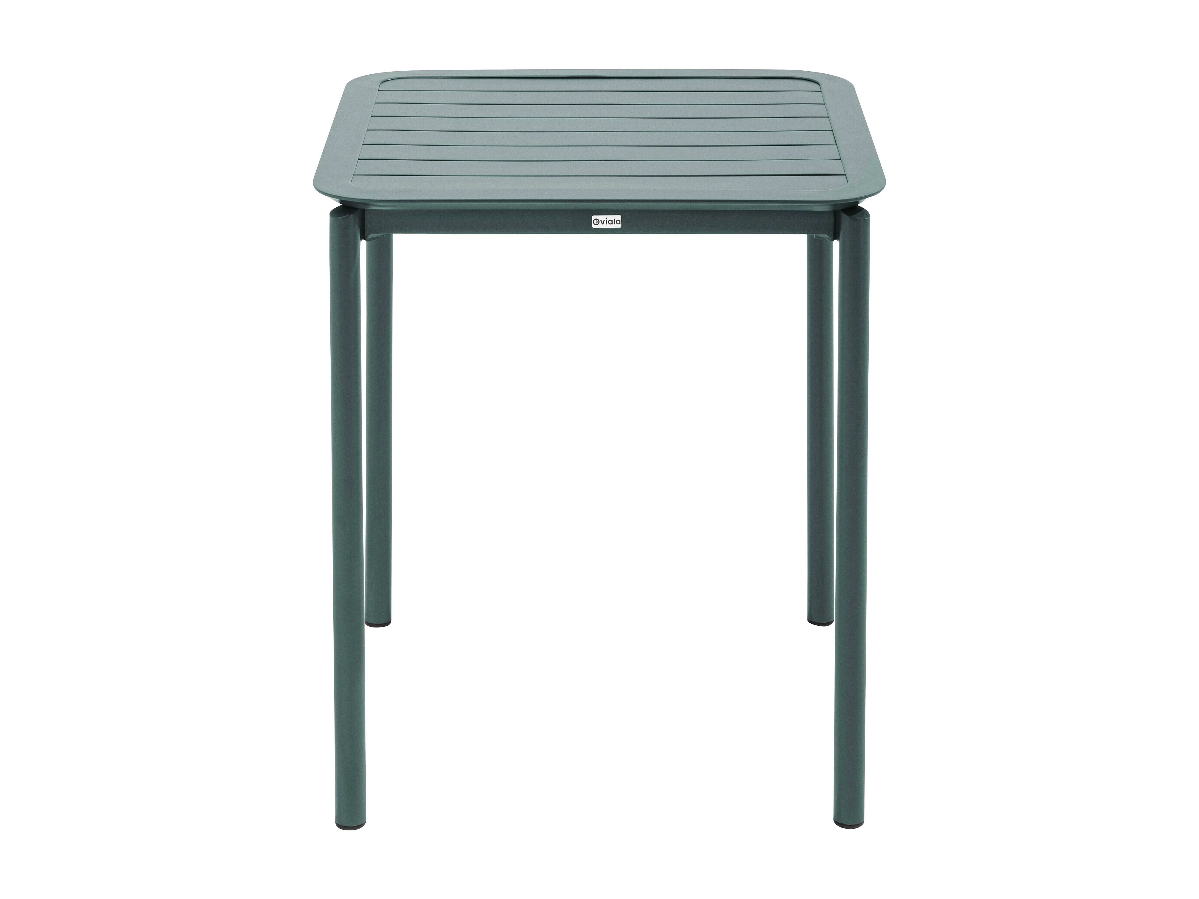 Vierkante terrastafel (70 x 70cm) en 2 donkergroene fauteuils