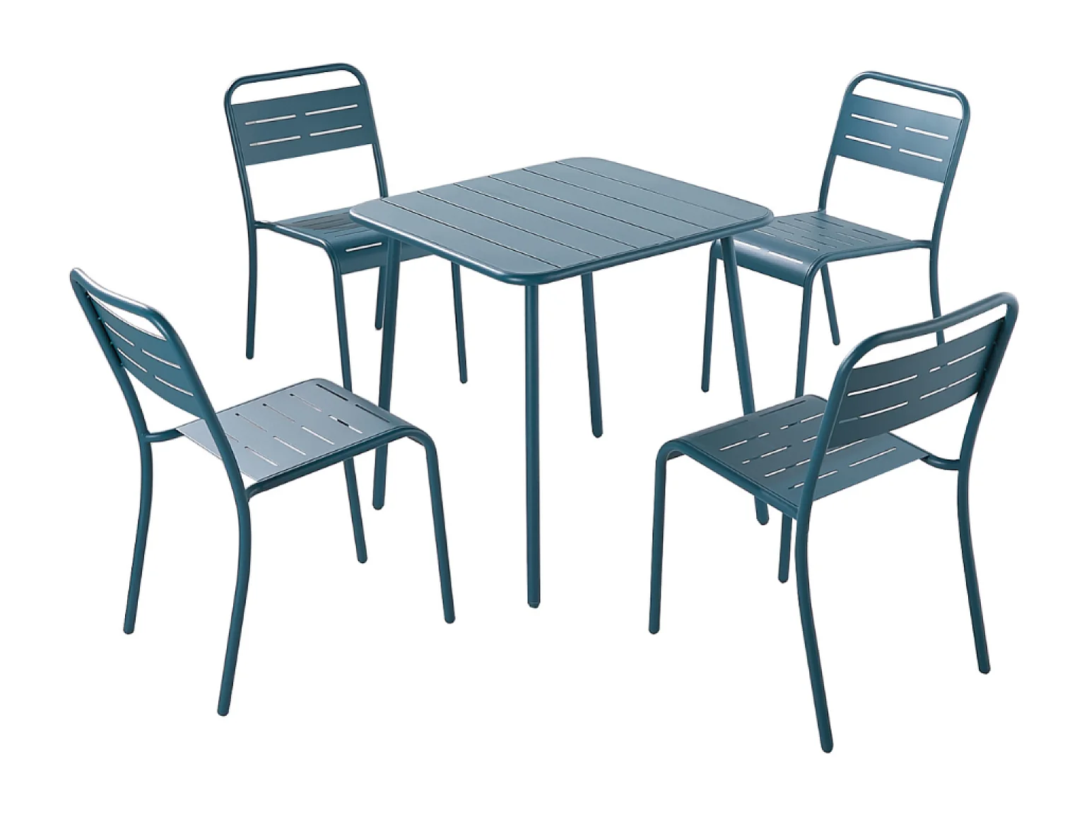 Vierkante tuinset voor 4 personen van blauw staal BERGAM