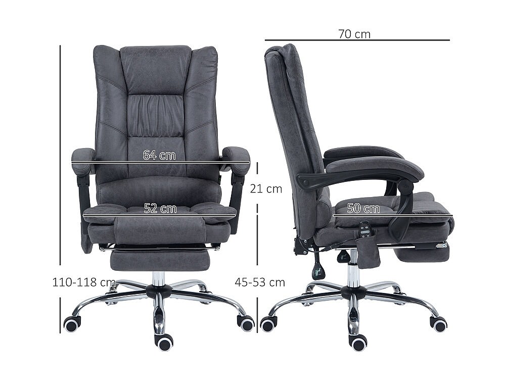 Vinsetto ergonomische bureaustoel met massage- en verwarmingsfunctie, 135° kantelbaar, in hoogte verstelbaar, draagvermogen tot 120 kg, kleur grijs