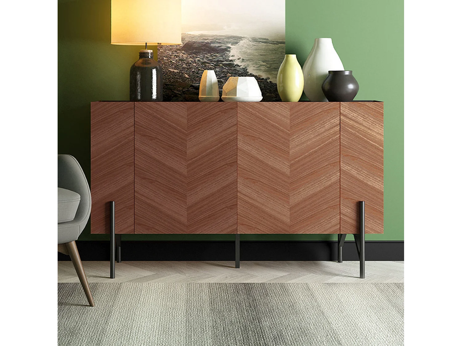 Vintage Notenhouten Buffet 120cm met Opbergruimte - Retro en Elegant