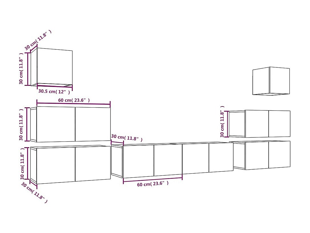 Vinton 8-delige Tv-meubelset bewerkt hout grijs sonoma eikenkleurig