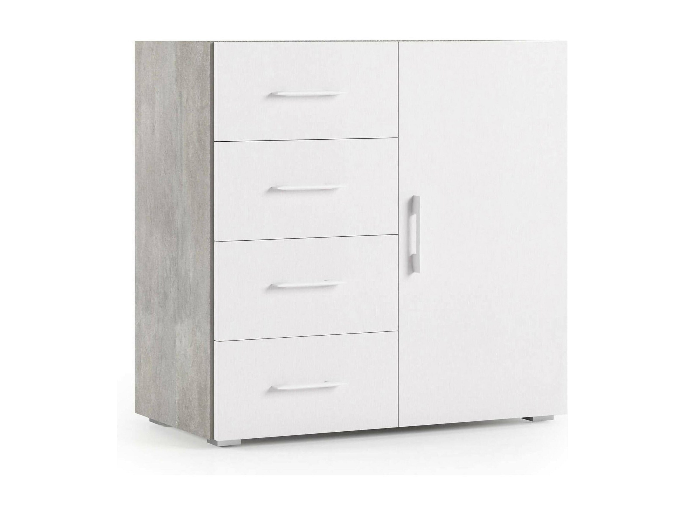 Violetta dressoir, Buffetkast met 1 deur en 4 laden, Woonkamerdressoir, Multifunctionele kast met planken, 100% Made in Italy, 90x41h87 cm, Wit en Cement