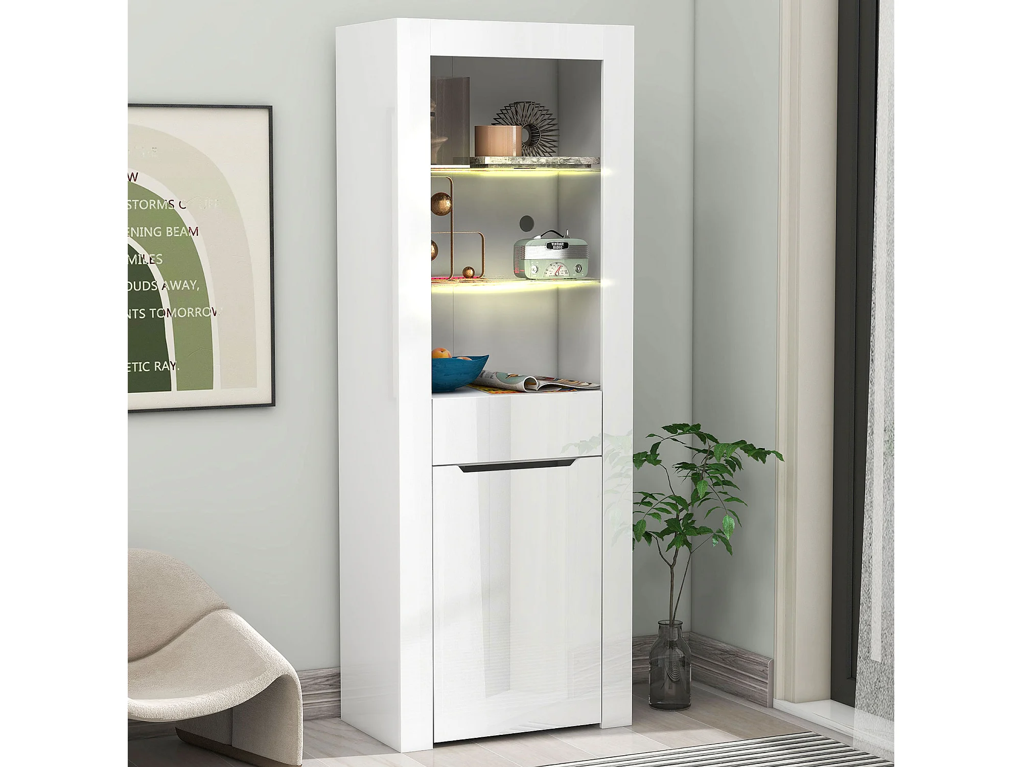 Vitrine met LED-verlichting, opbergmeubel met planken, wit