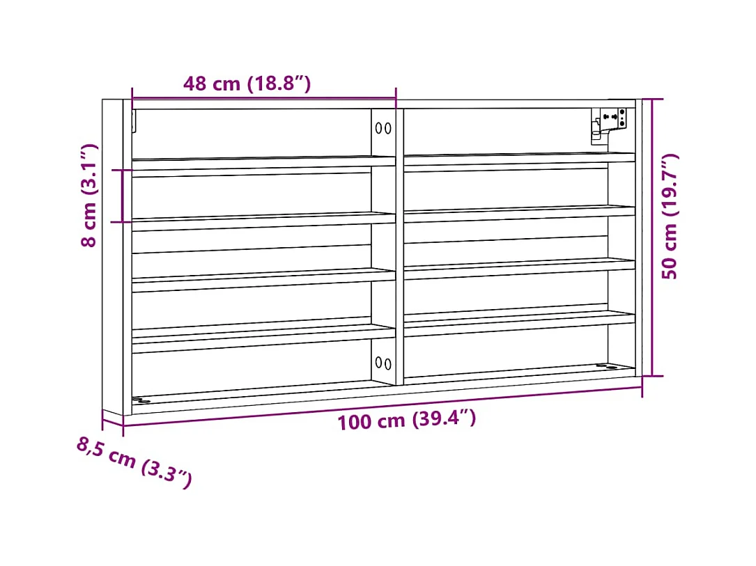 Vitrinekast 100x8,5x50 cm bewerkt hout sonoma eikenkleurig