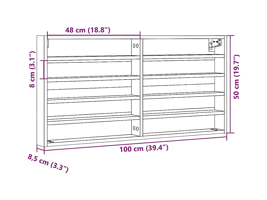 Vitrinekast 100x8,5x50 cm bewerkt hout zwart