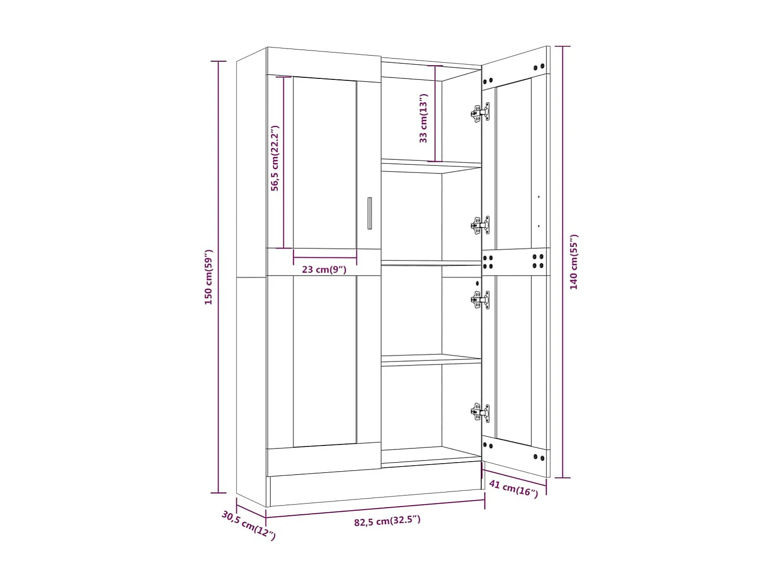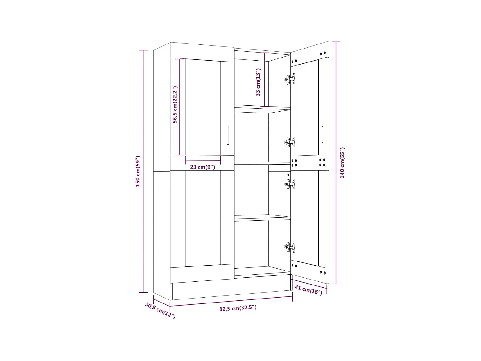 Vitrinekast 82,5x30,5x150 cm bewerkt hout bruin eikenkleur