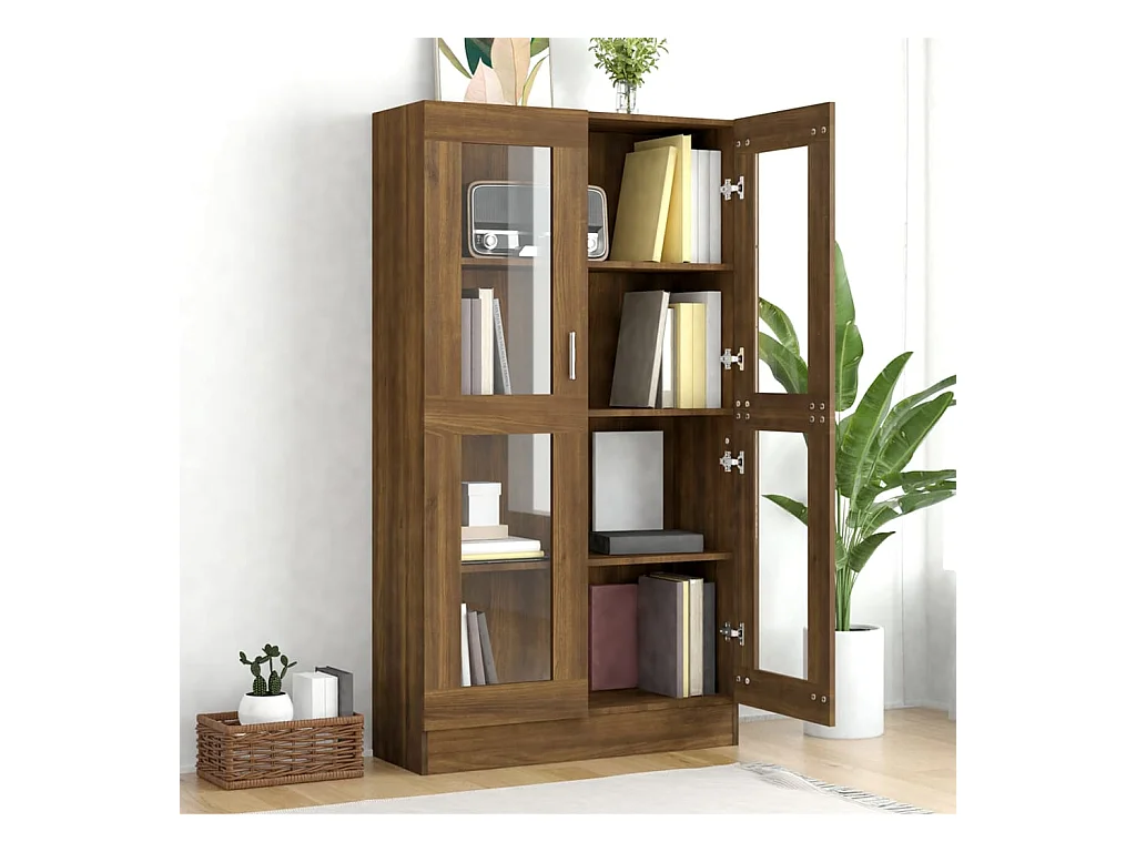 Vitrinekast 82,5x30,5x115 cm bewerkt hout bruin eikenkleur