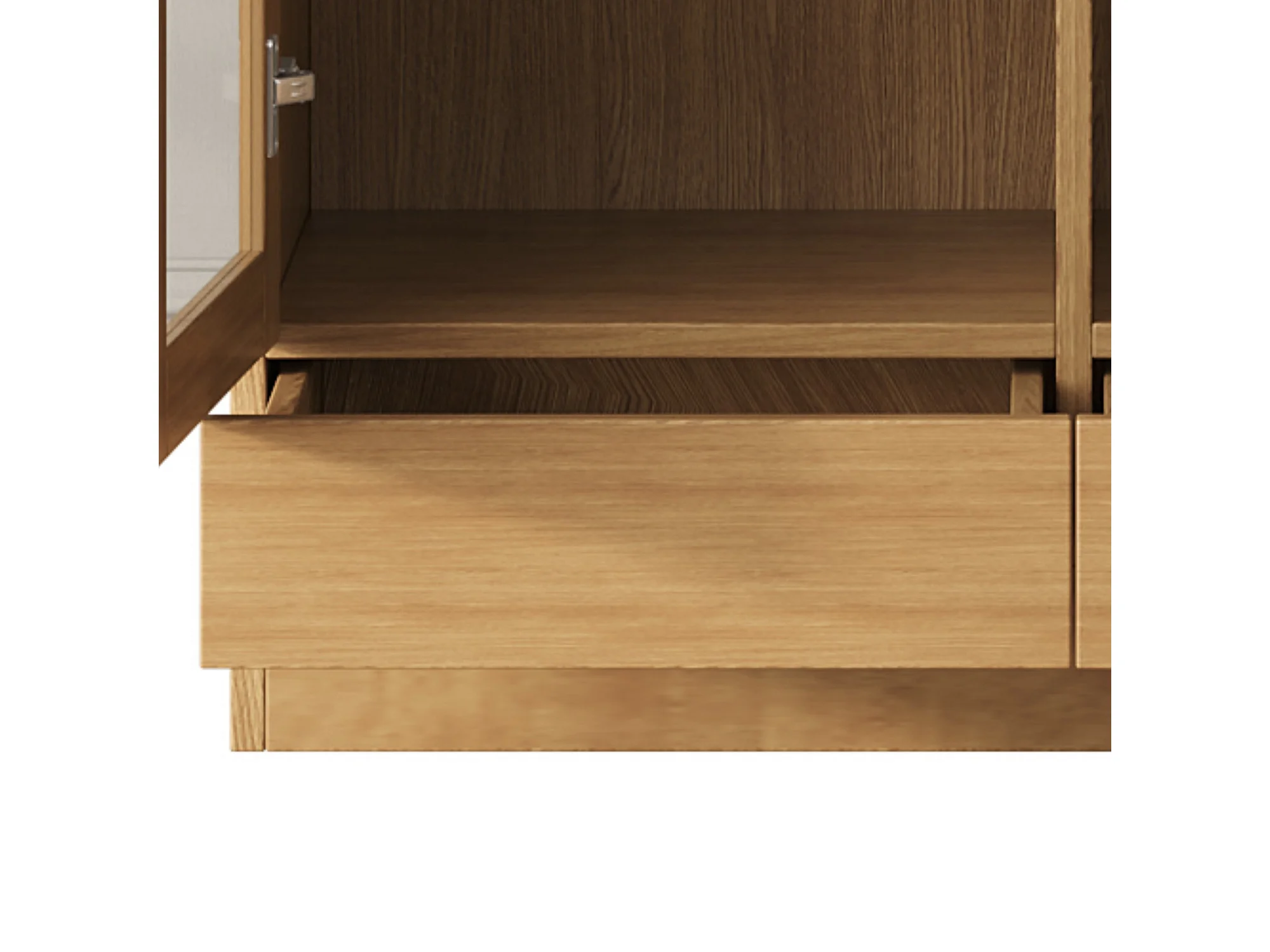 Mindy naturel massief houten vitrinekast 2 lades 4 deuren Mazari 100 cm