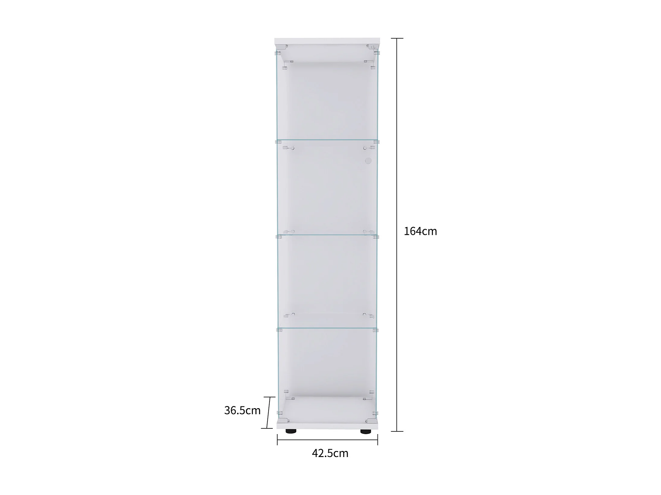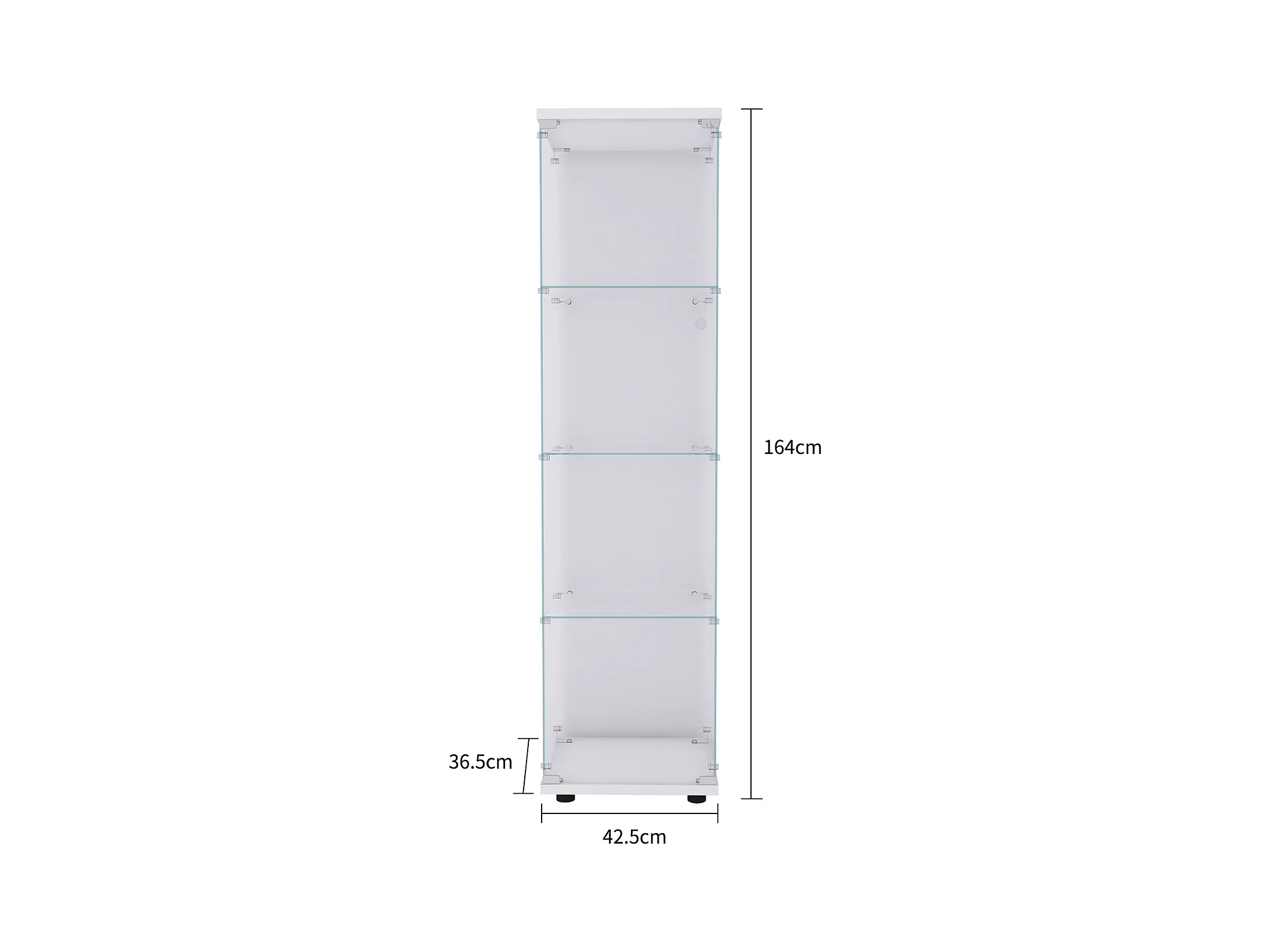 Vitrinekast van gehard glas met 2 lagen, deur, wit metalen frame en geïntegreerde ledverlichting – modern en elegant design