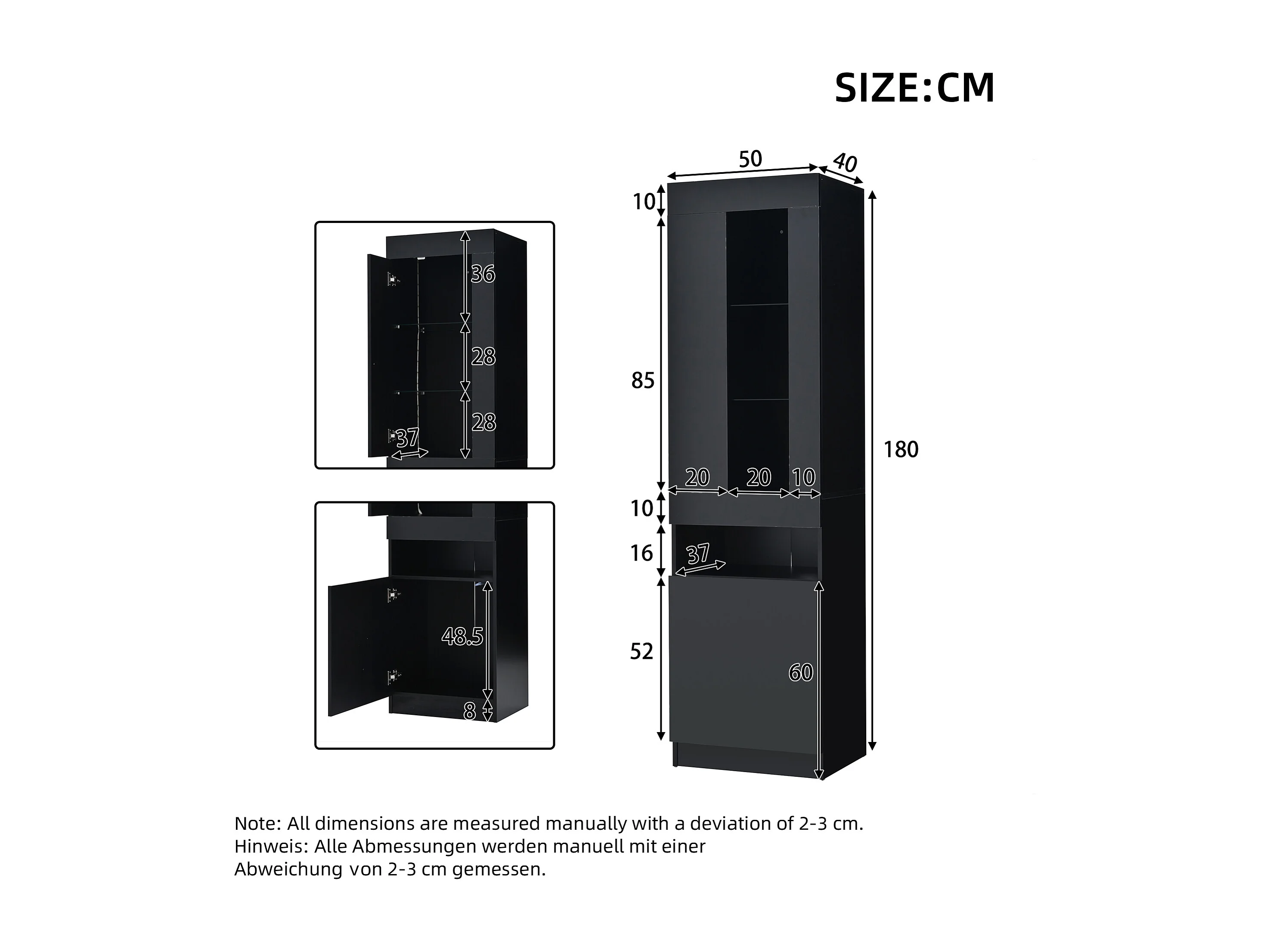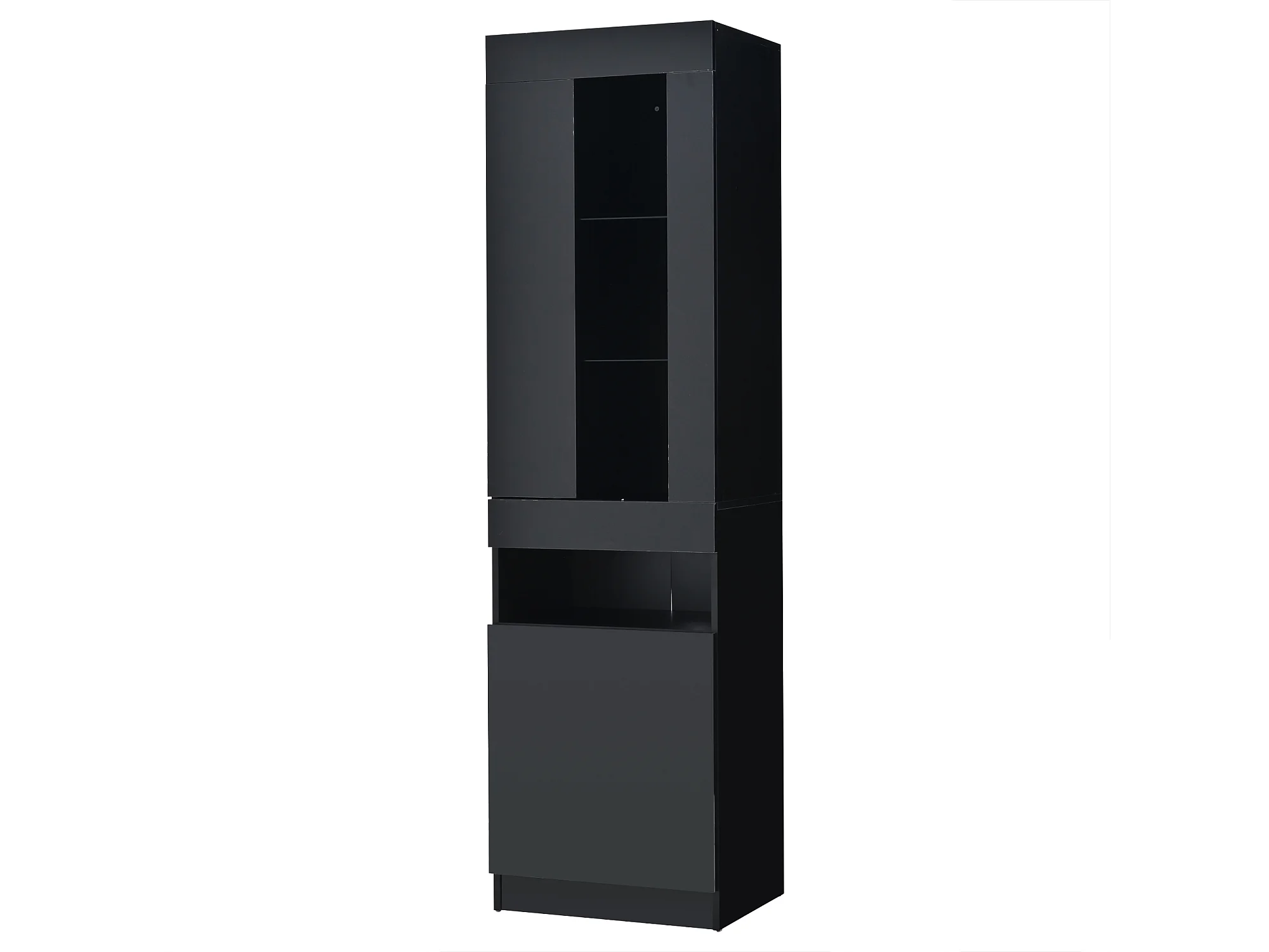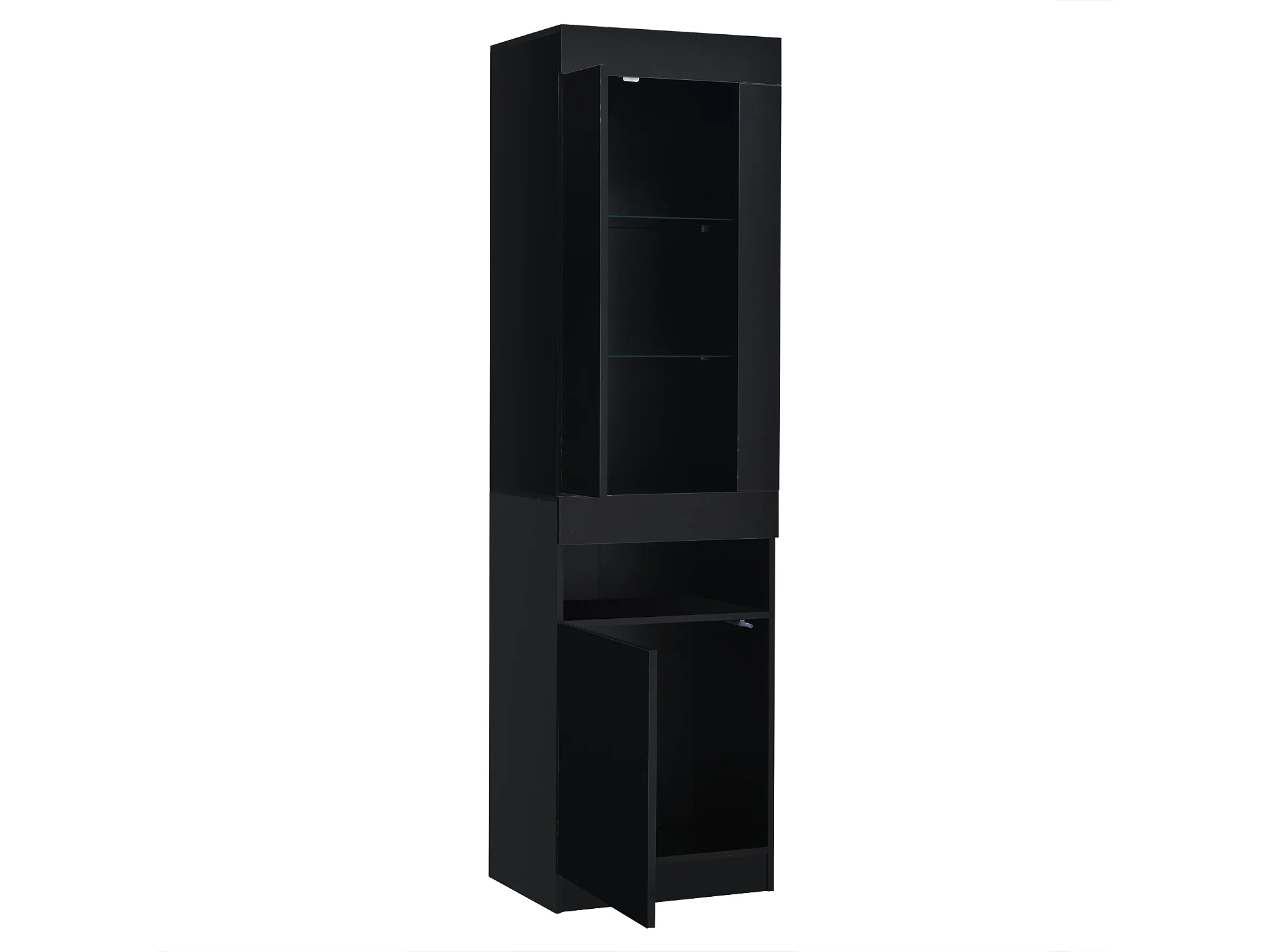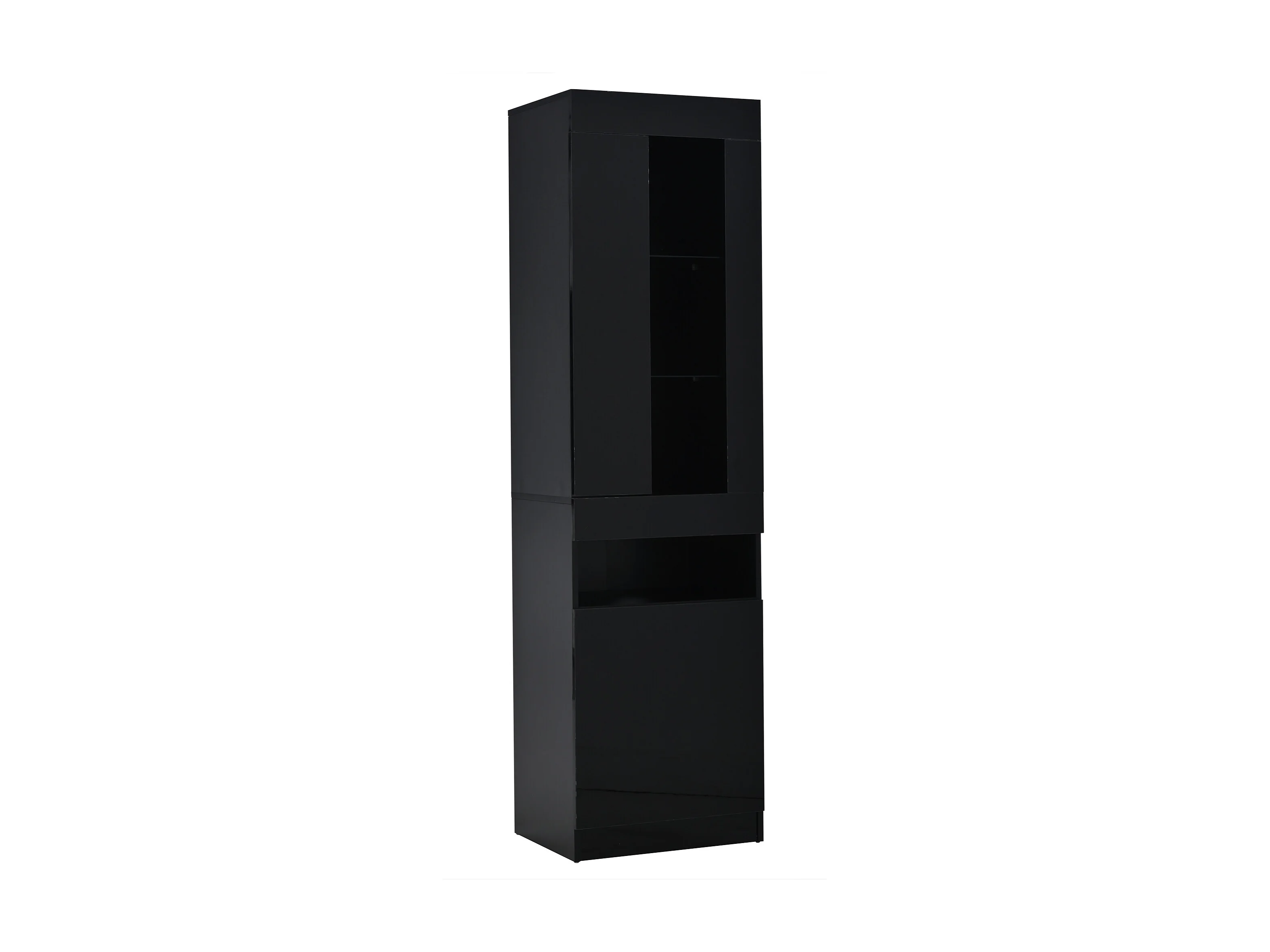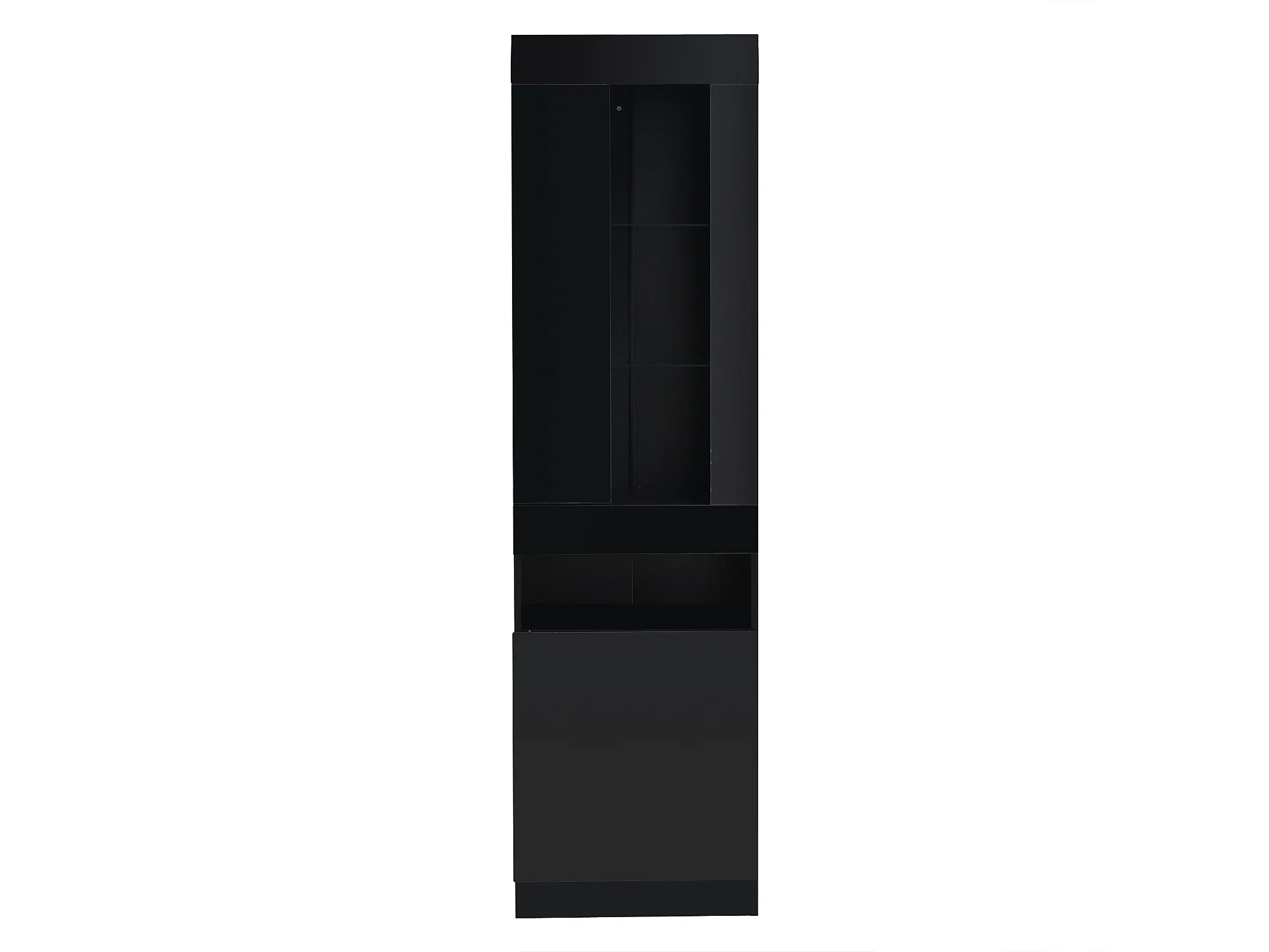 Vitrinekast met ledverlichting en 2 deuren - Glanzende afwerking - Zwart