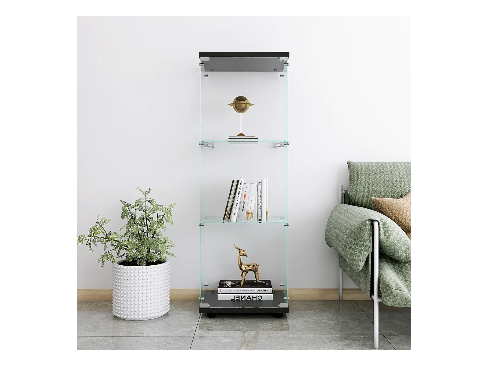 Vitrinekast van glas met 3 planken, enkele deur, vitrinekast voor woonkamer, slaapkamer, kantoor, zwarte glazen boekenkast op standaard, snelle installatie