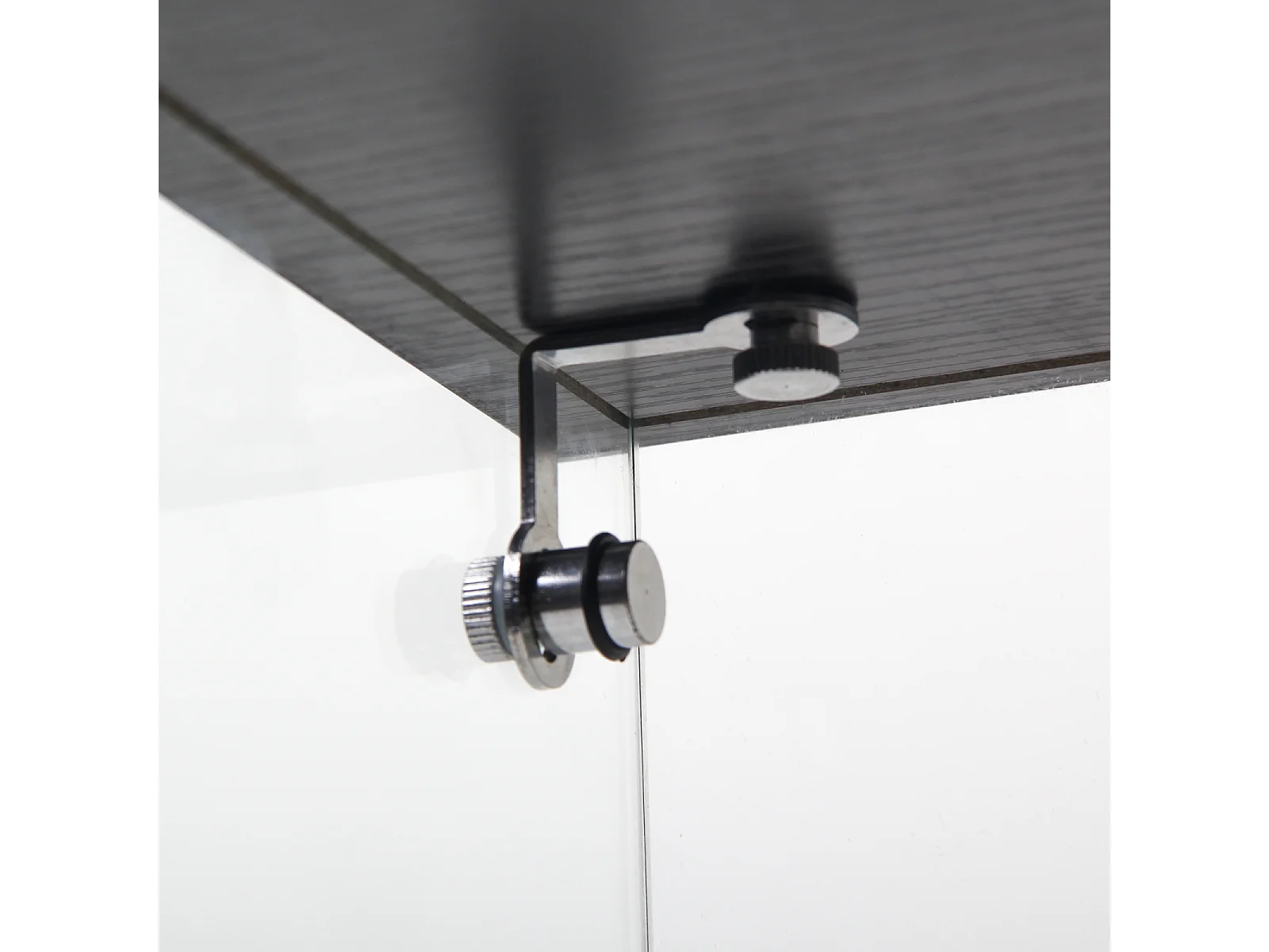 Vitrinekast van gehard glas met 2 lagen, deur, zwart metalen frame en geïntegreerde ledverlichting – modern en elegant design