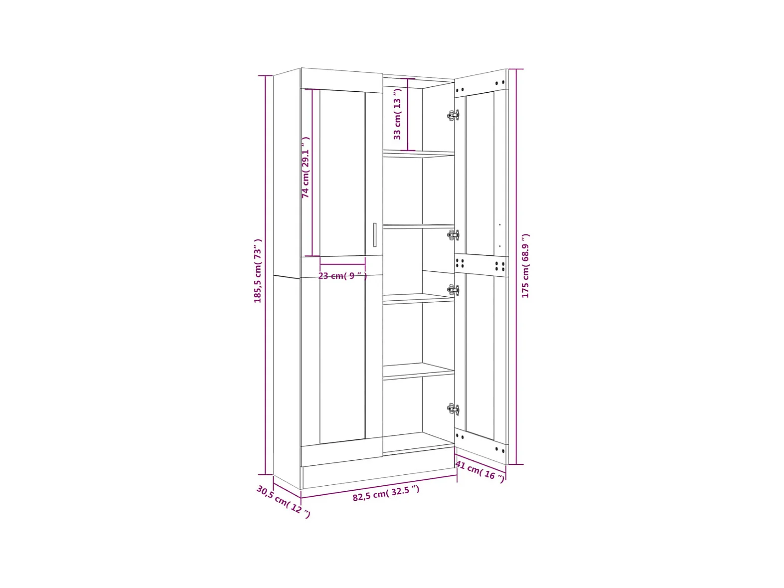 Vitrinekast 82,5x30,5x185,5 cm bewerkt hout sonoma eikenkleurig NL253882