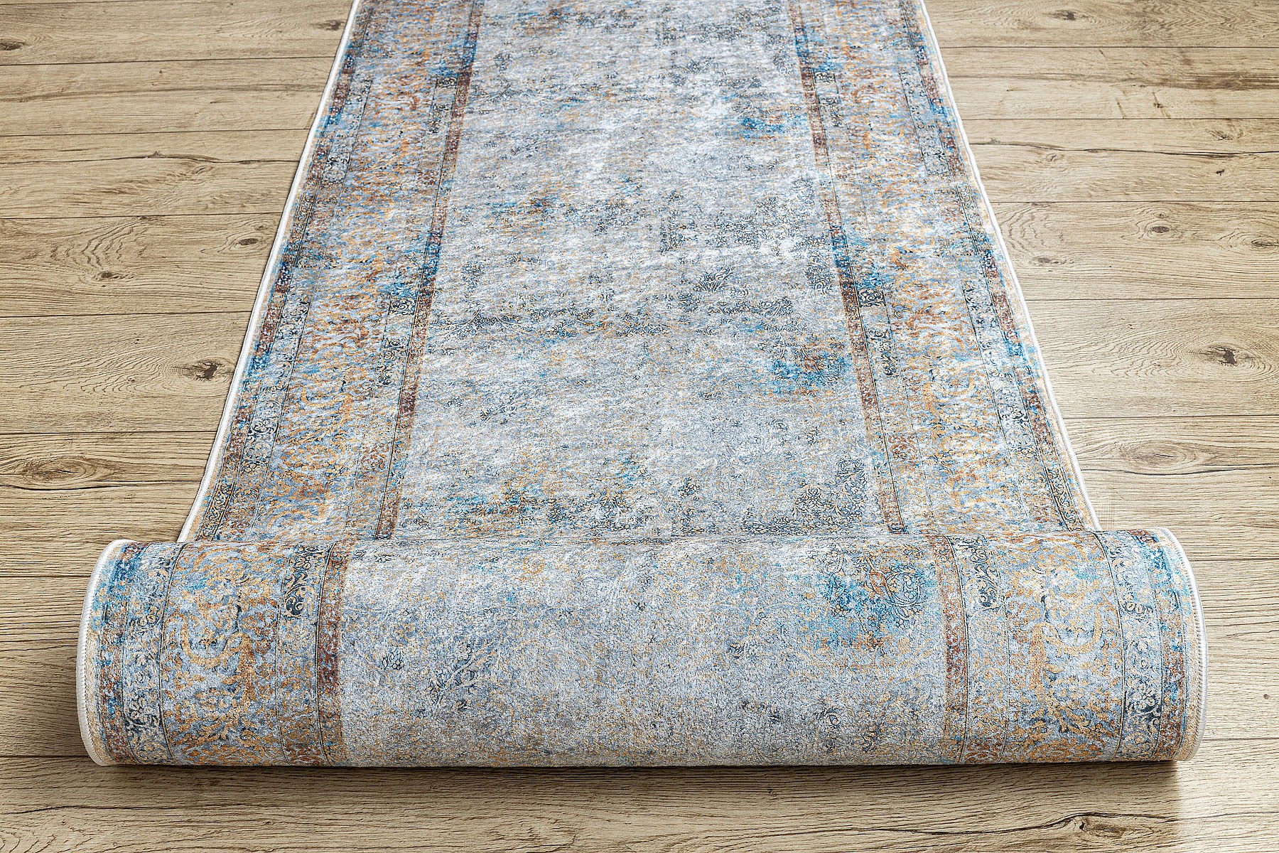 Vloerbekleding met rubber bekleed LOTUS BORDERO 95111 grijs / beige wa 120x890 cm