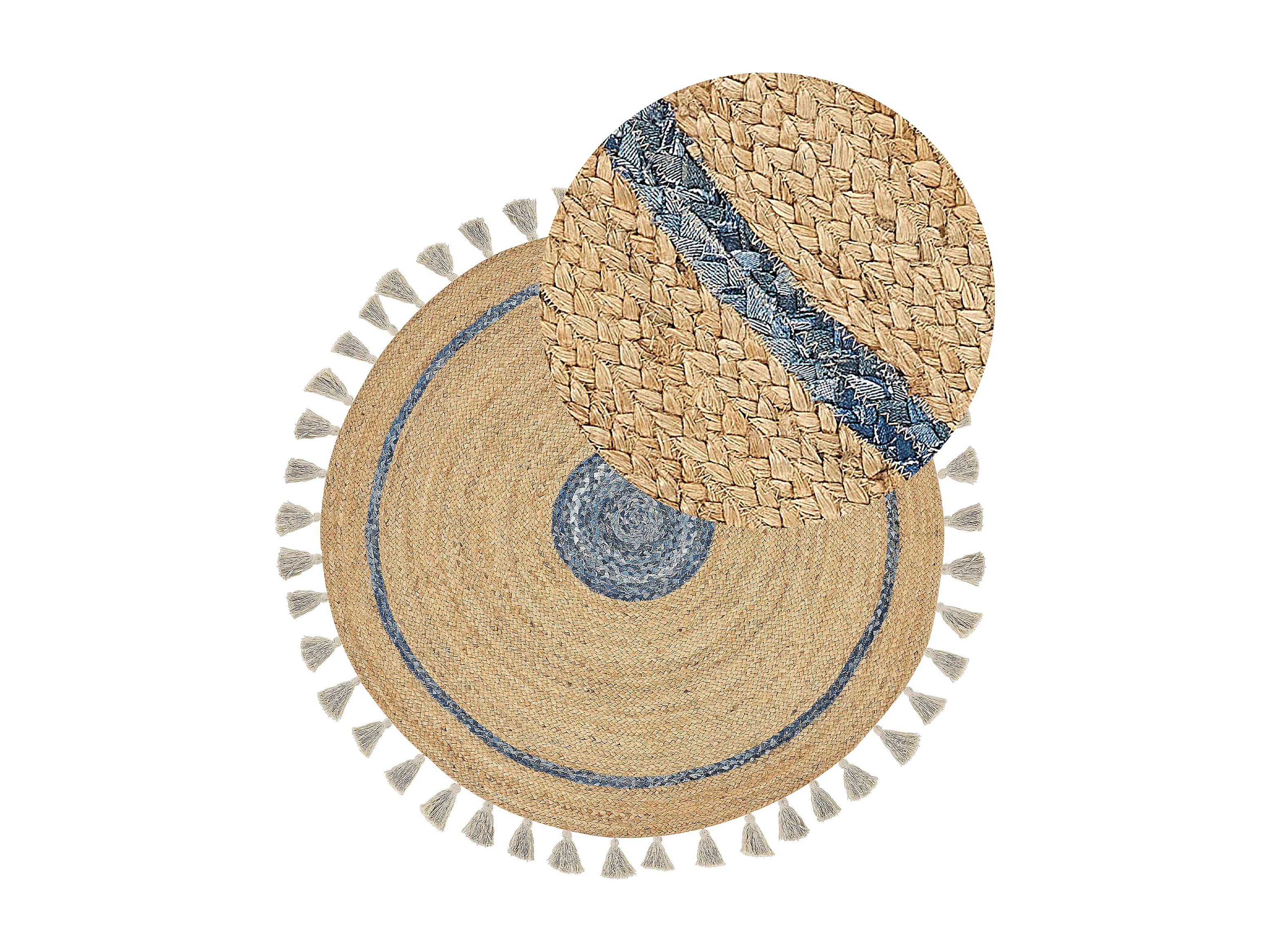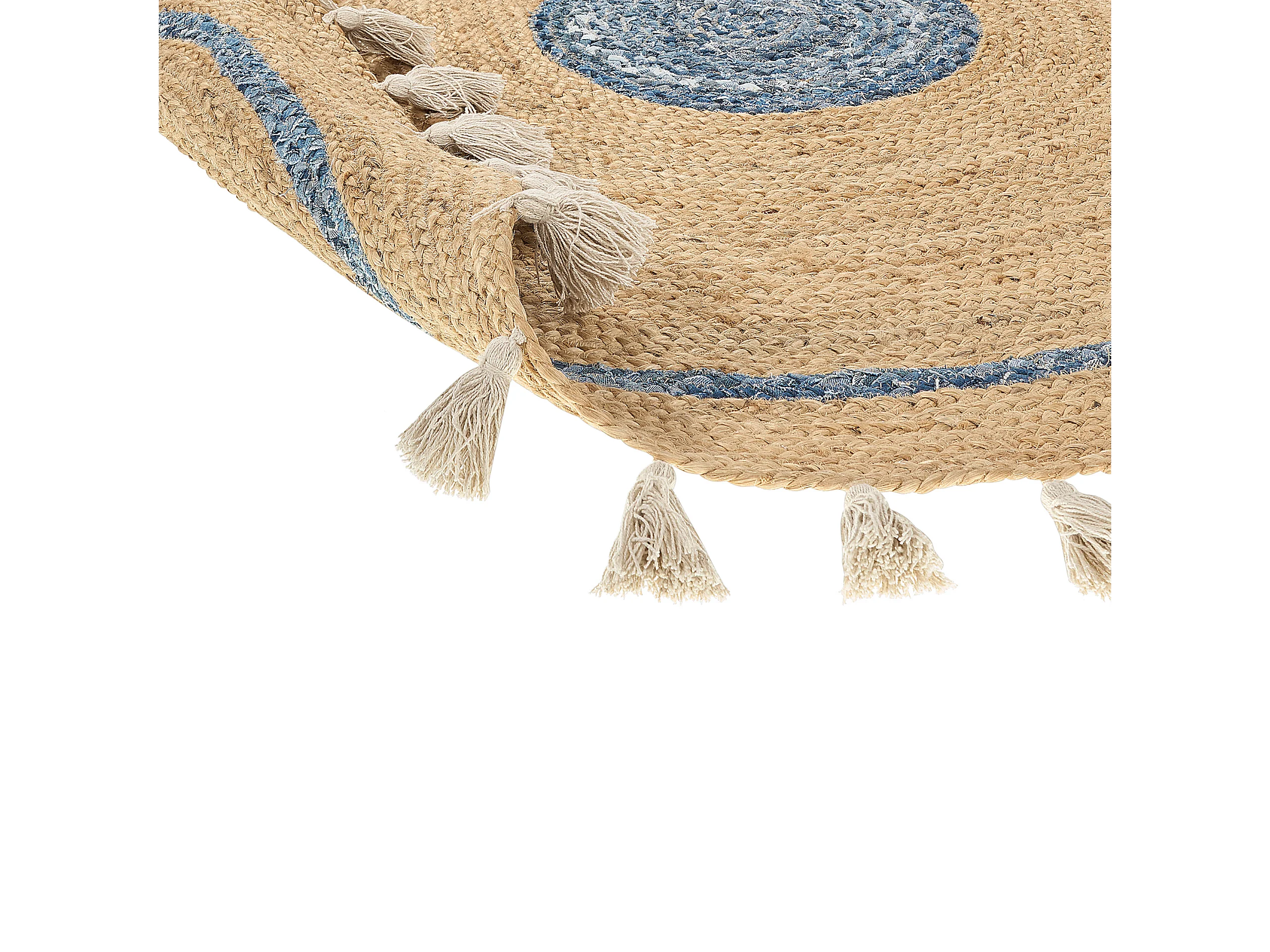 Vloerkleed OBAKOY ø 140 cm Jute Blauw