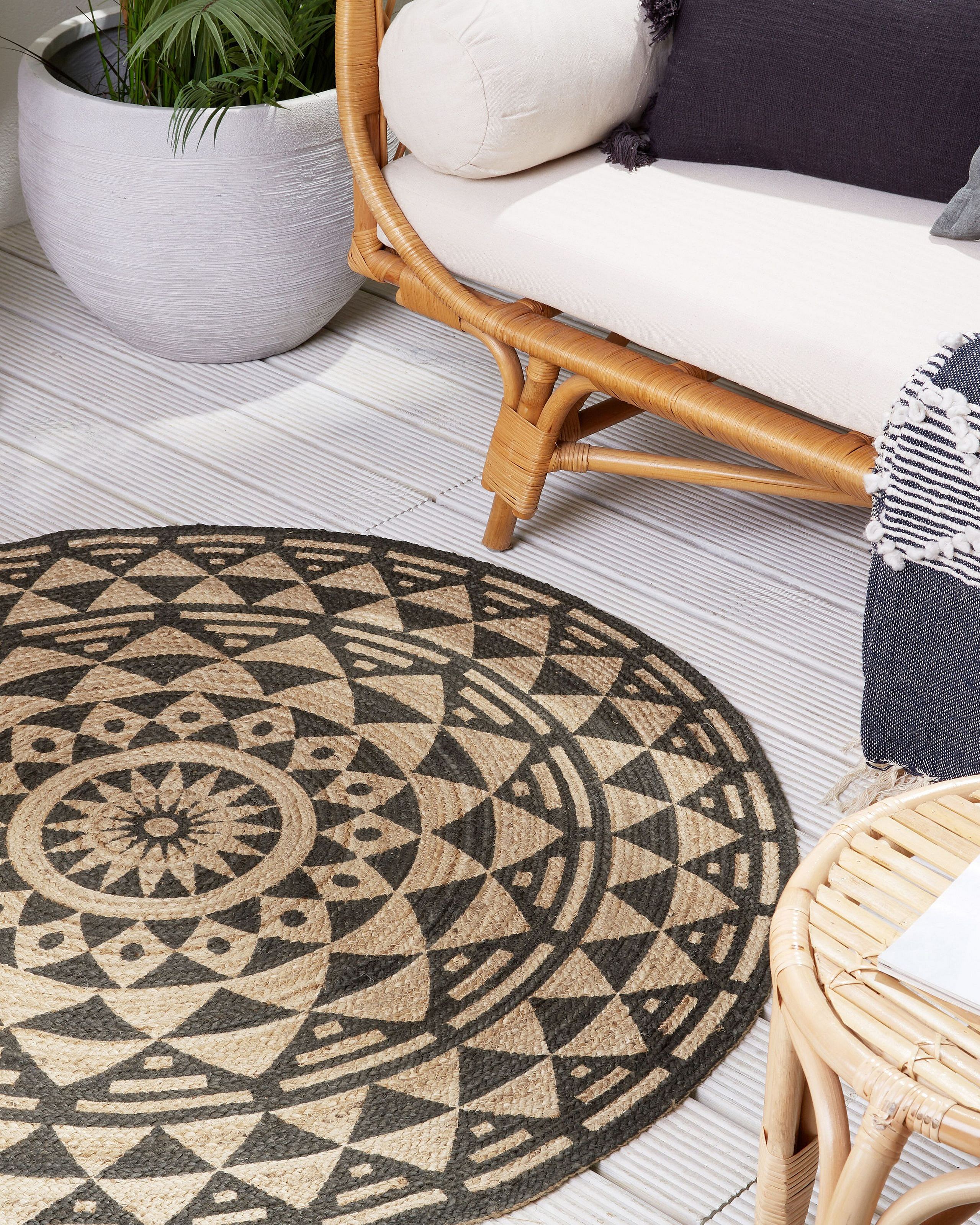 Vloerkleed jute zwart ⌀ 120 cm ALAKIR
