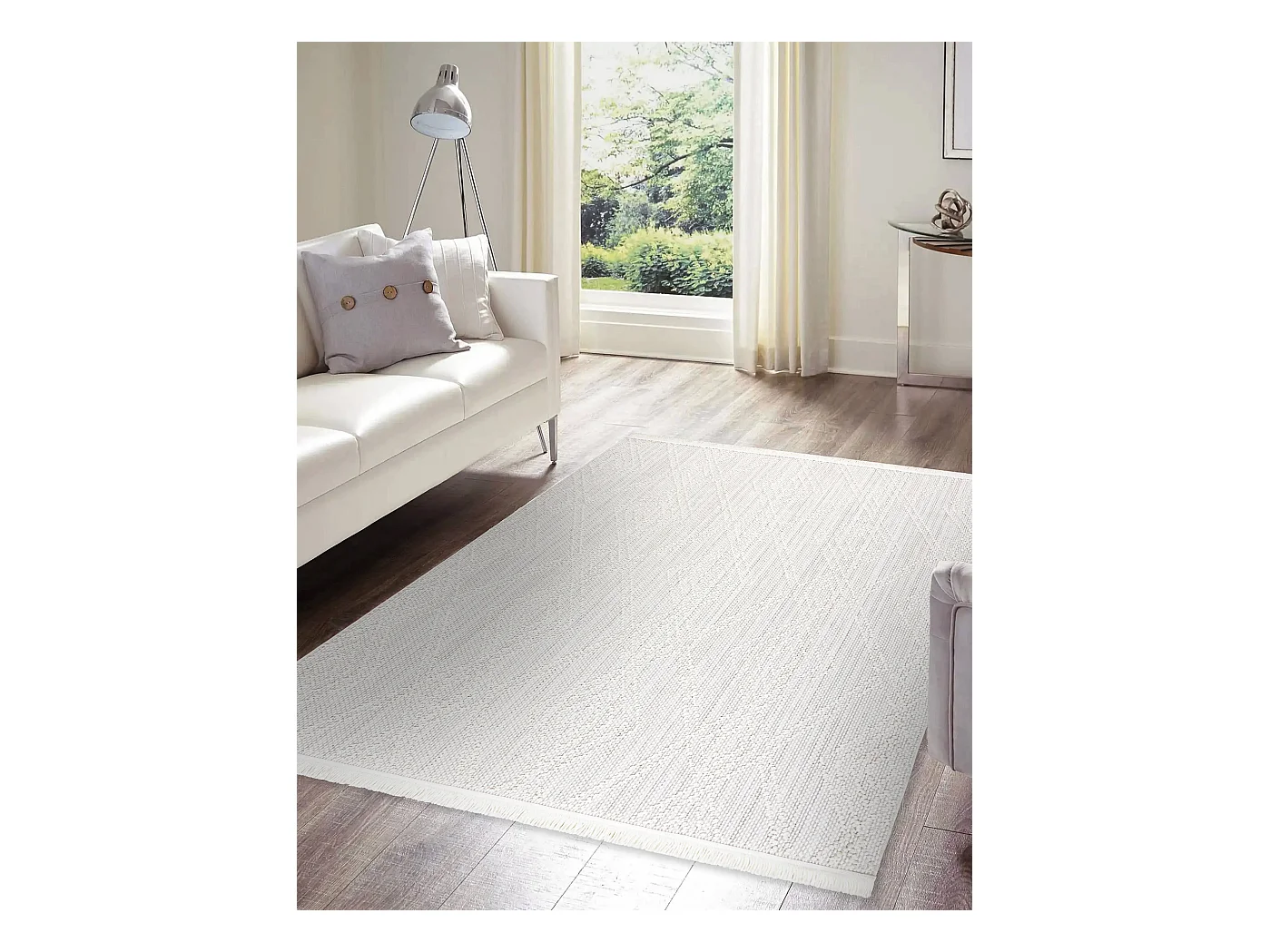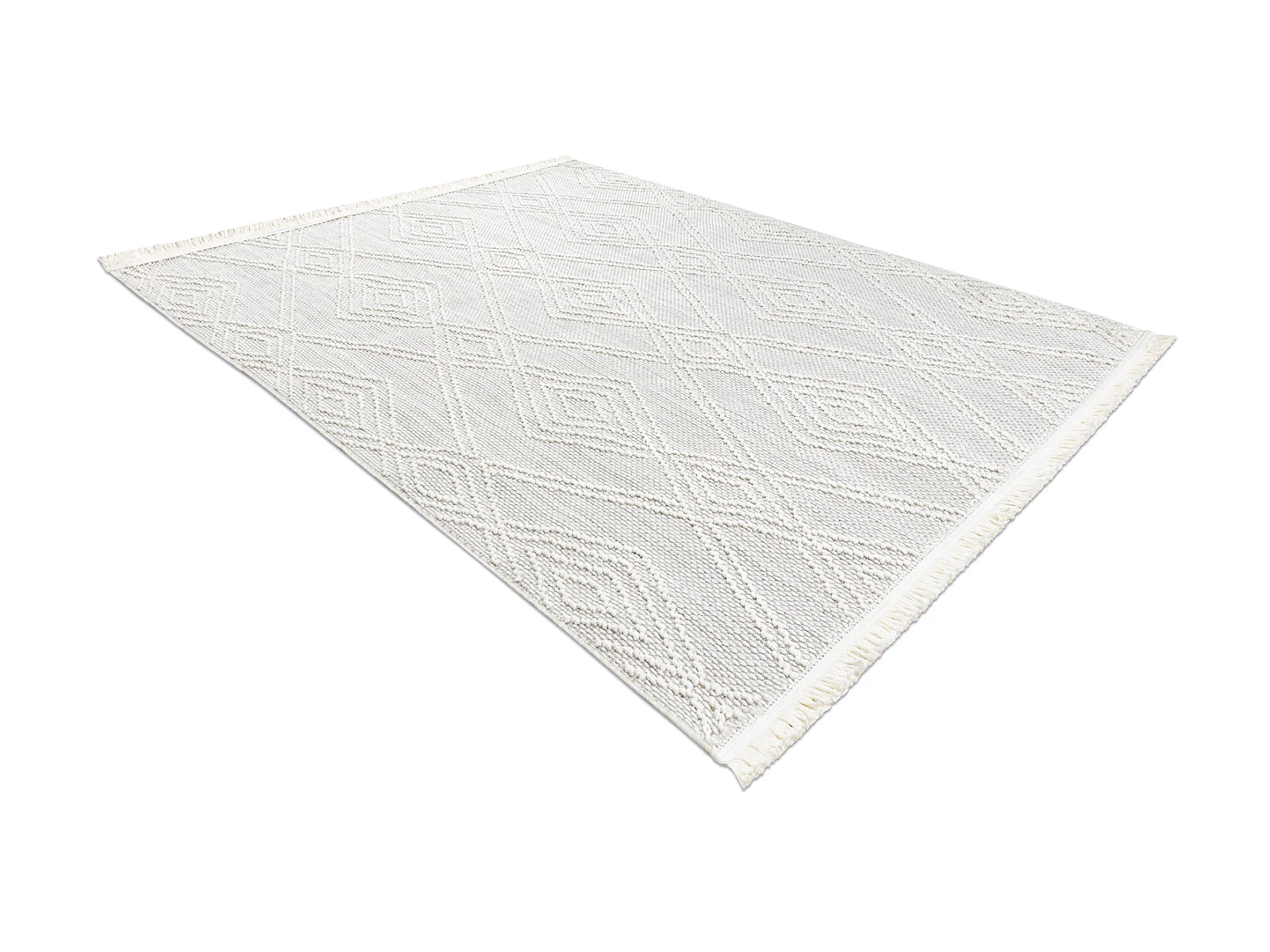 Vloerkleed NANO EN14A Diamanten, lus, platgeweven wit 80x150 cm