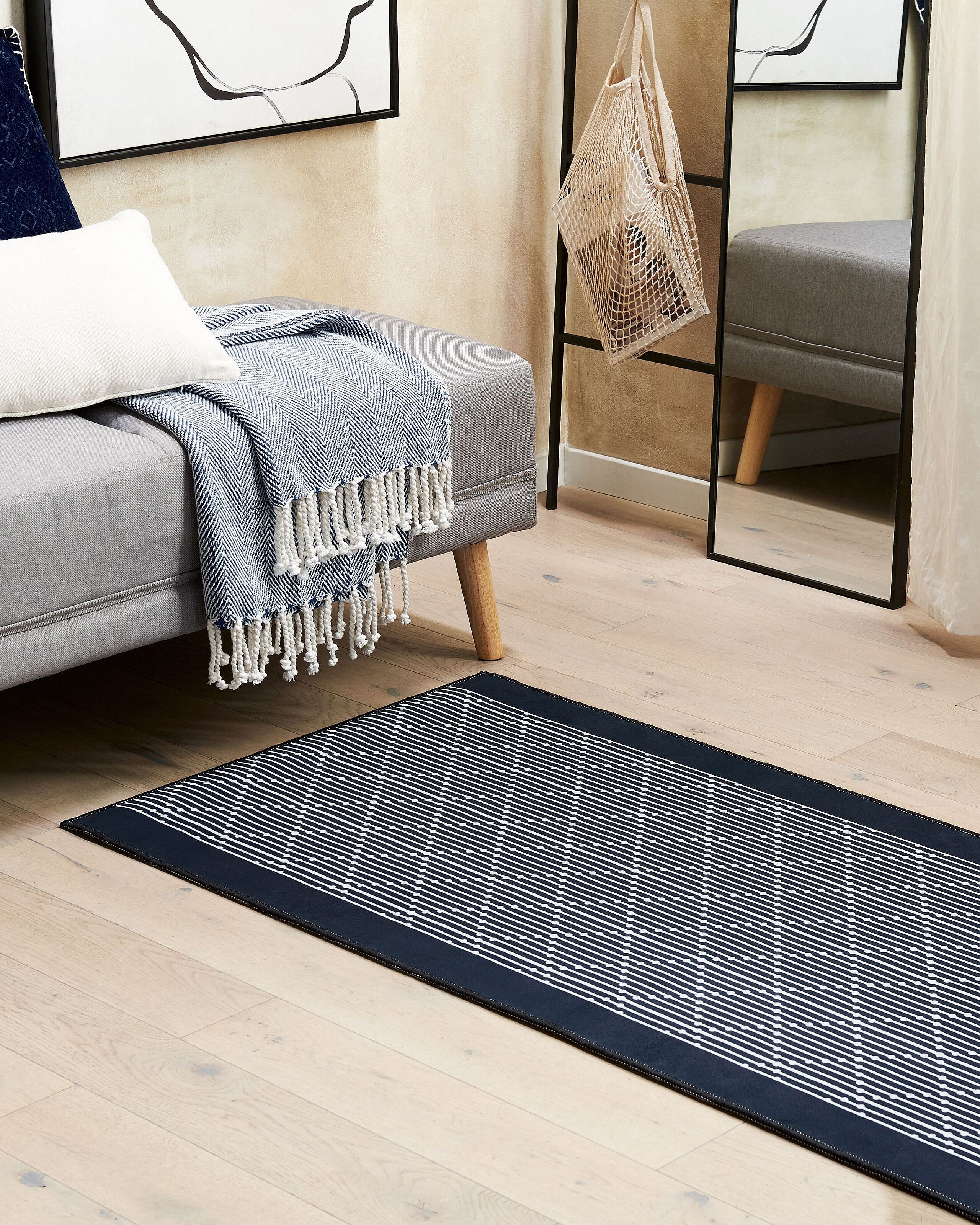 Vloerkleed polyester marineblauw 70 x 200 cm CHARVAD
