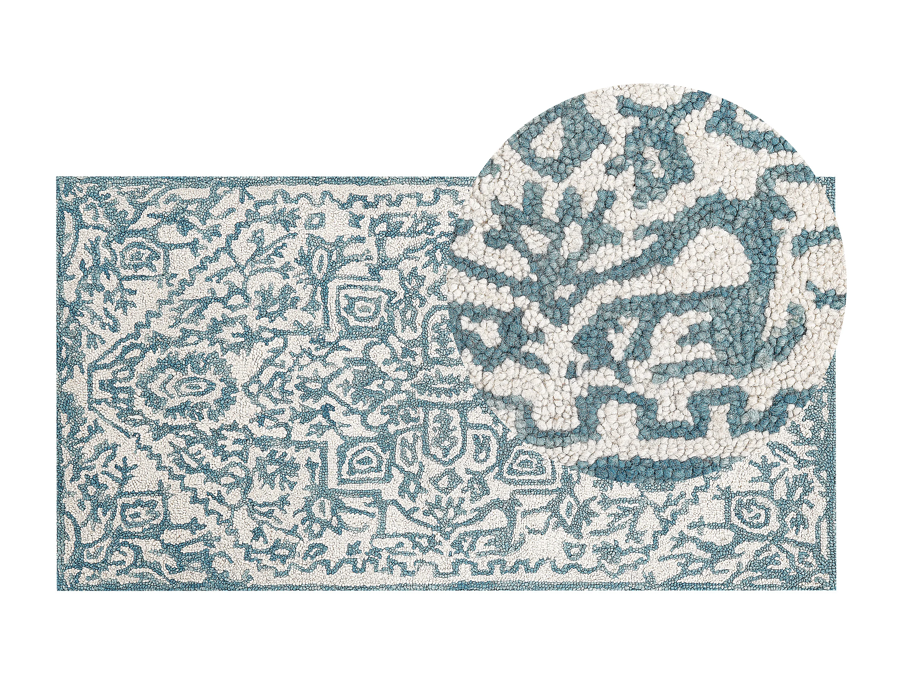 Vloerkleed wol wit/blauw 80 x 150 cm AHMETLI