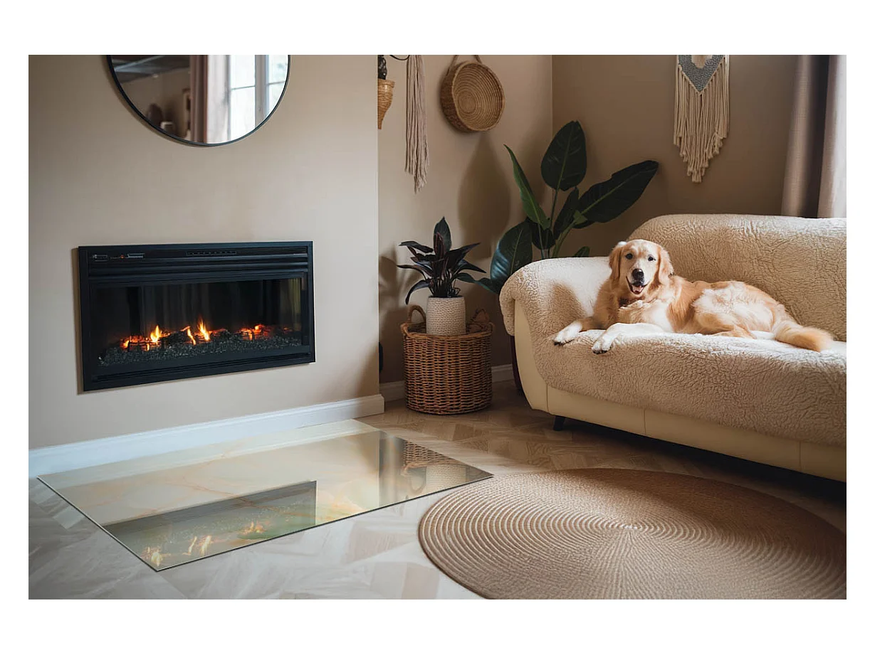 Vloerplaat voor houtkachel, onder open haard - Een kwart - 1/4 100x100 - Kleur Beige