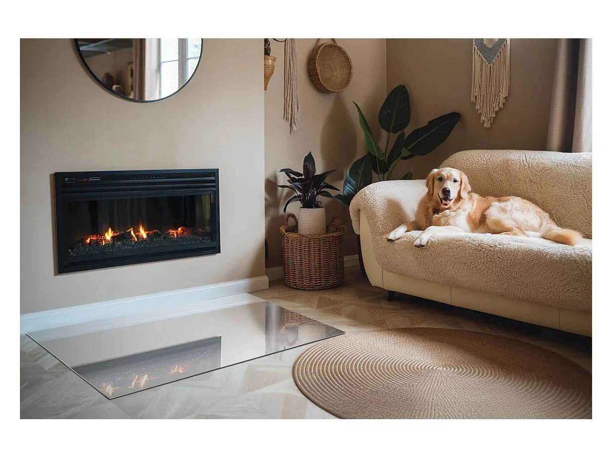 Extra grote wandgemonteerde ethanolhaard in staal en gehard glas