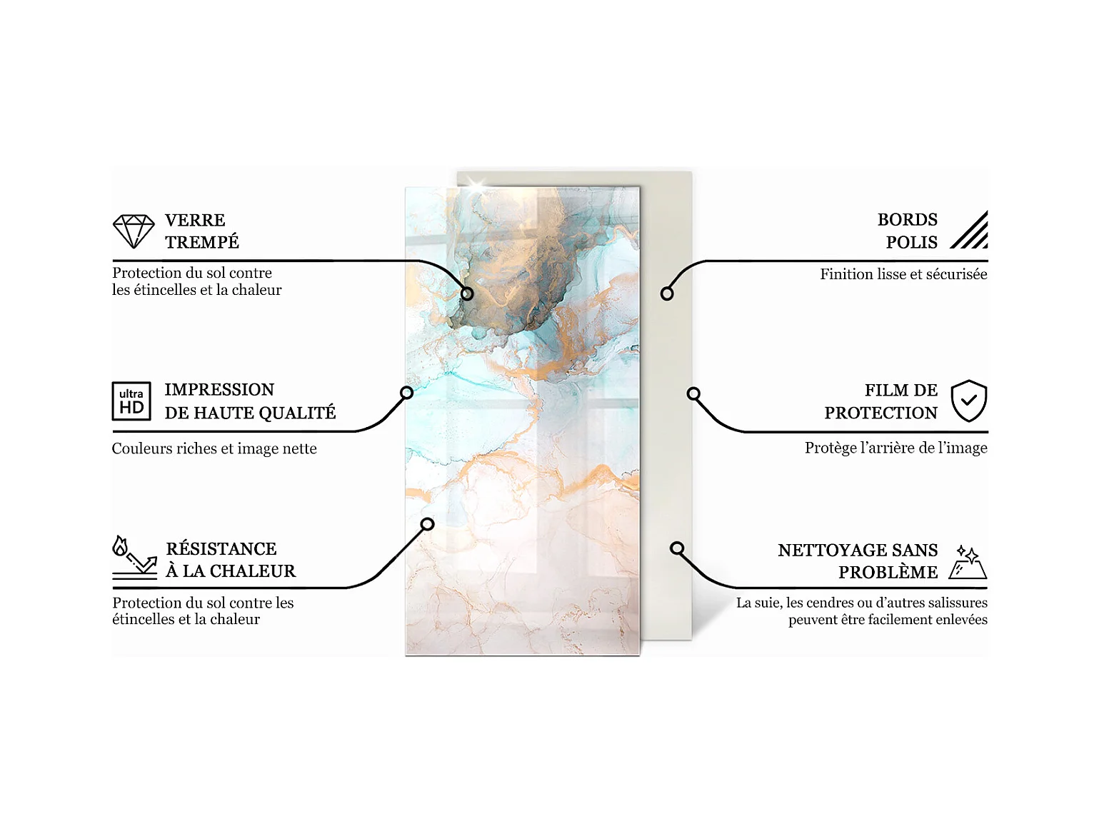 Vloerplaat voor houtkachel, onder open haard - Een kwart - 1/4 100x100 - Marmeren aderpatroon