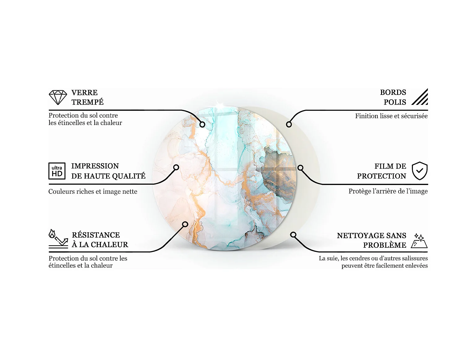 Vloerplaat voor houtkachel, onder open haard - Een kwart - 1/4 100x100 - Marmeren aderpatroon