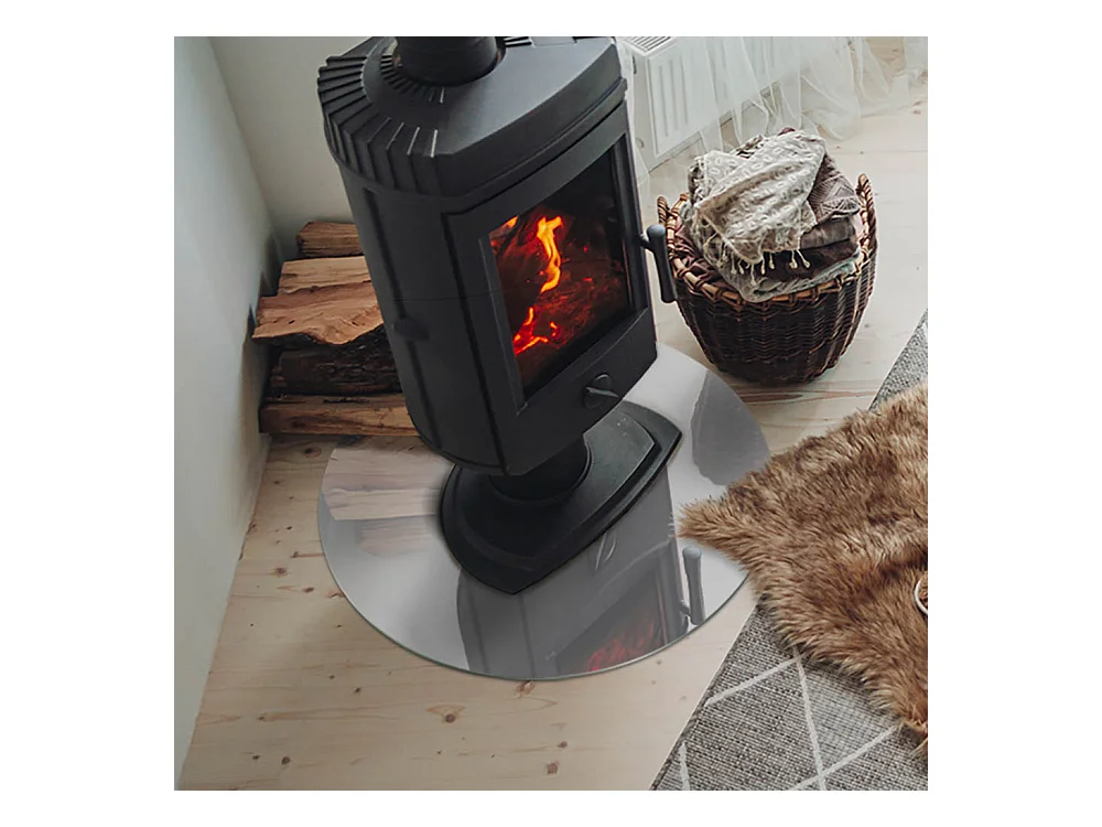Vloerplaat voor houtkachel, onder open haard - Wiel - 60x60 - Kleur Lichtgrijs