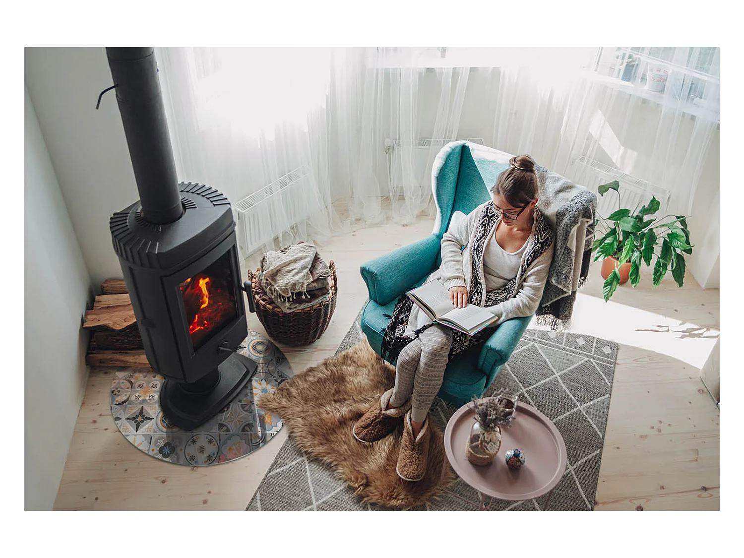 Vloerplaat voor houtkachel, onder open haard - Wiel - 60x60 - Kleur Lichtgrijs