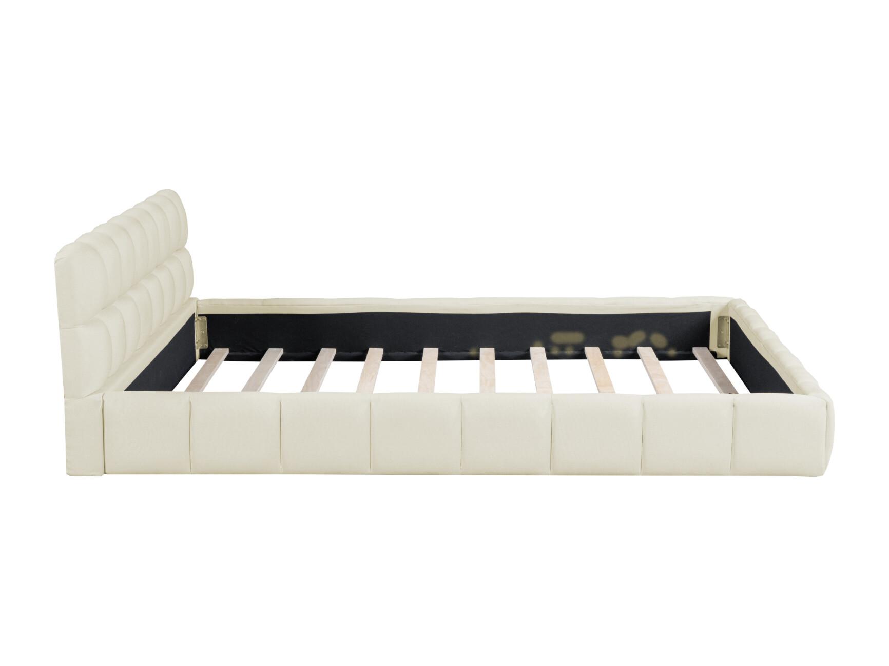 Volwassen bed 140x190cm linnen met zachte rugleuning, vlak bed met lattenbodem, beige