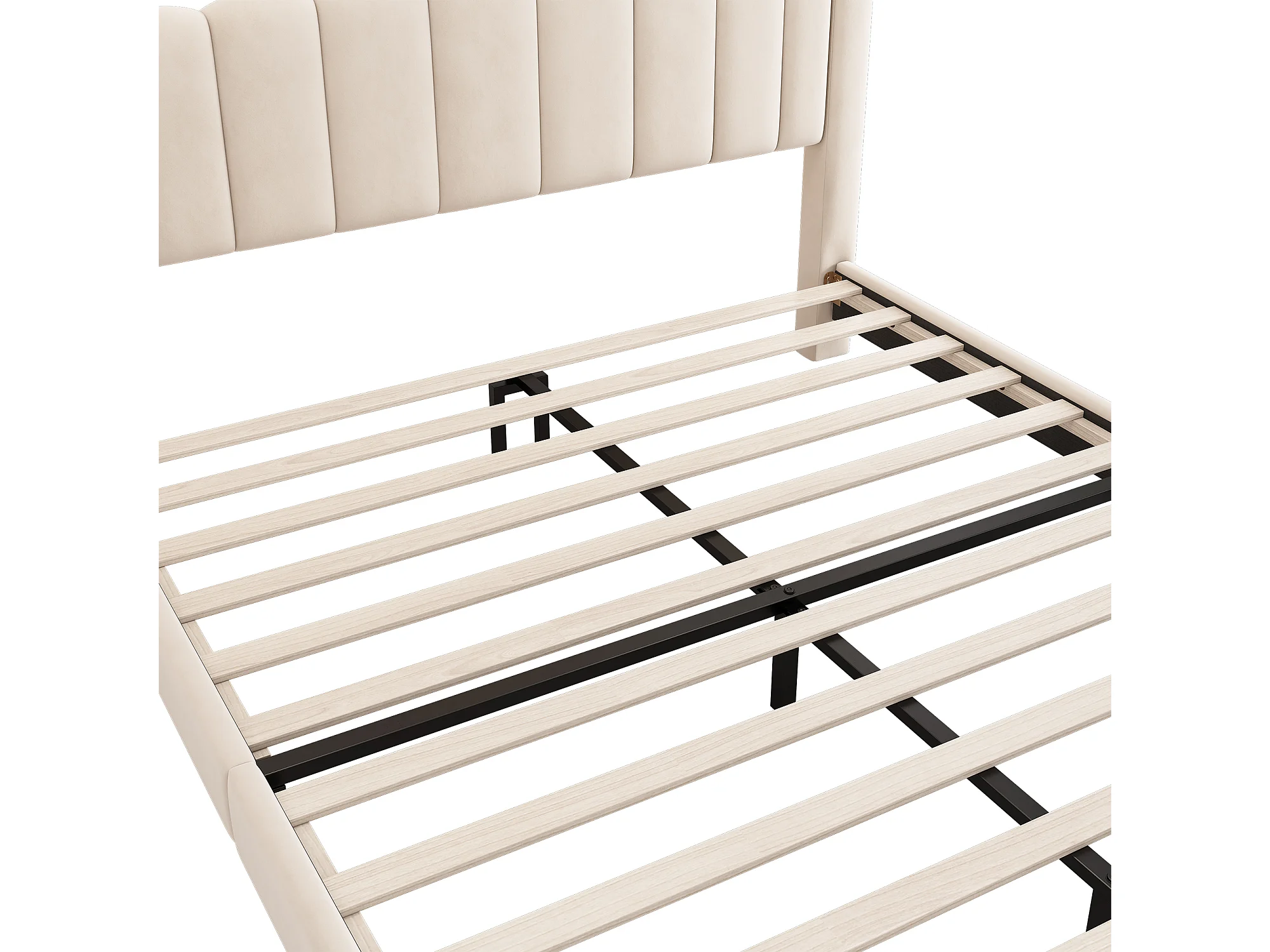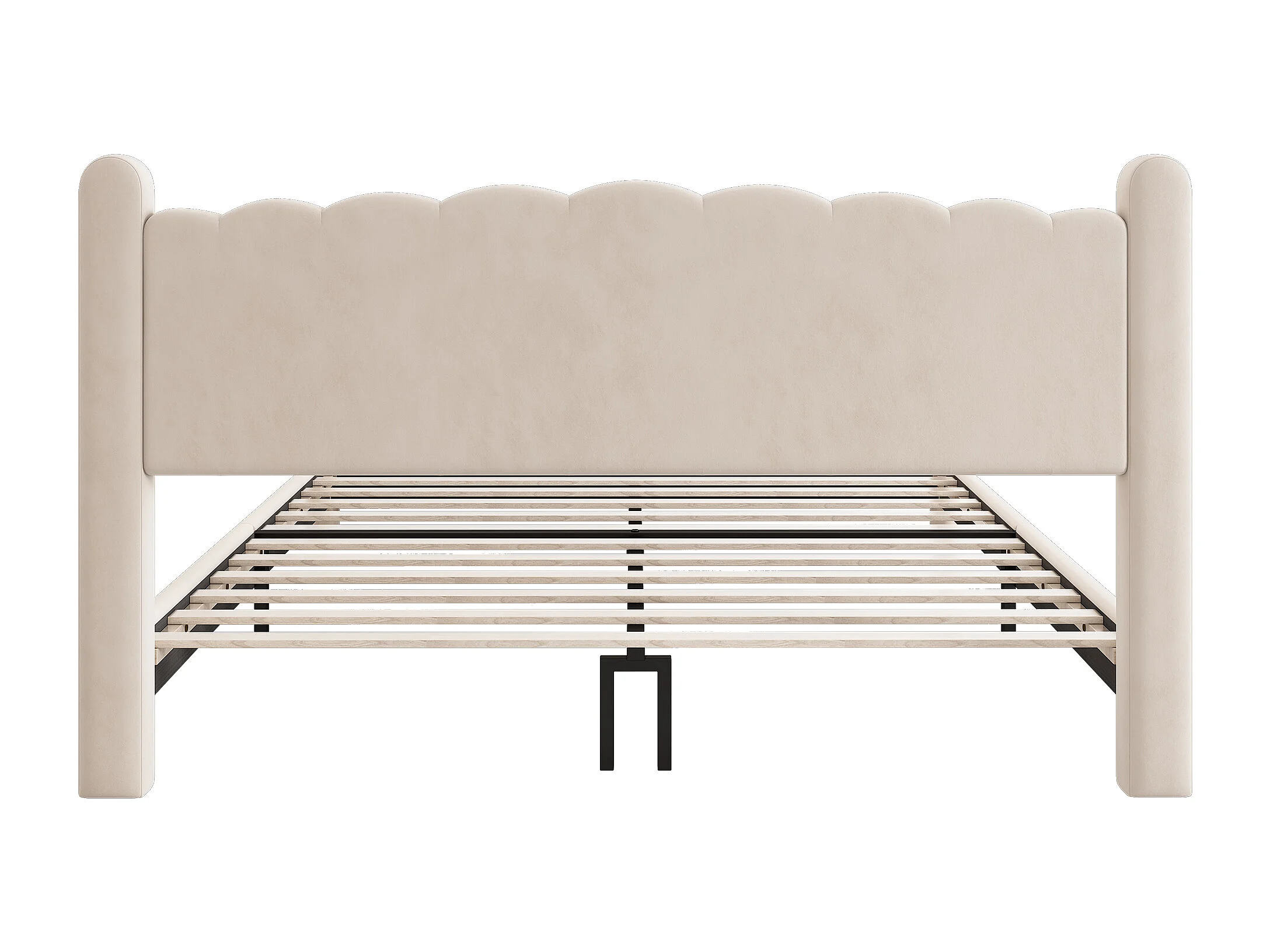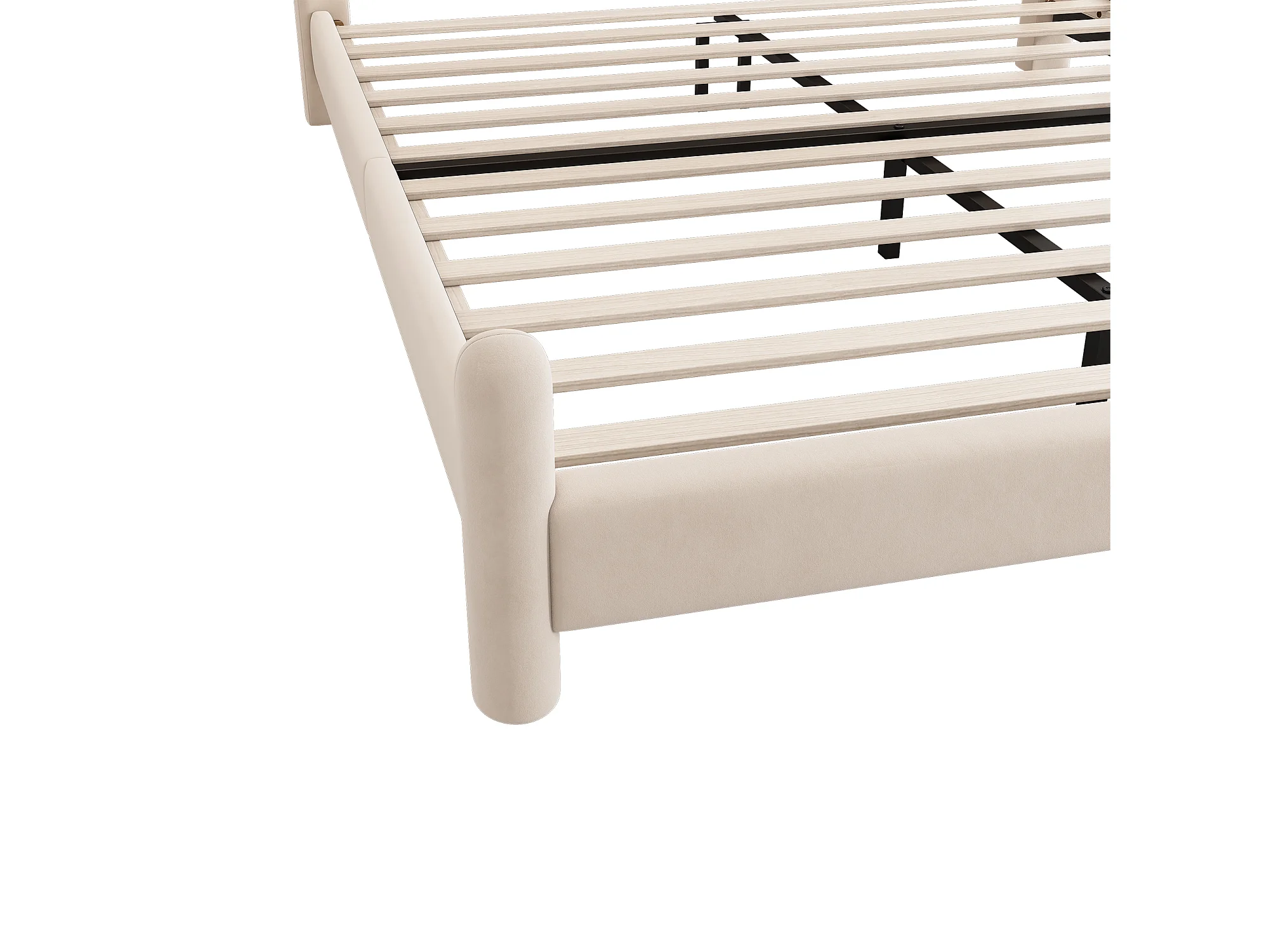 Volwassen bed 160x200 cm - Tweepersoonsbed met lattenbodem en hoofdbord - cilindrische poten - beige fluweel