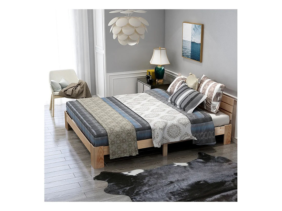Volwassen bed tweepersoonsbed 140x200 cm met lattenbodem - houten bedframe - naturel (zonder matras)