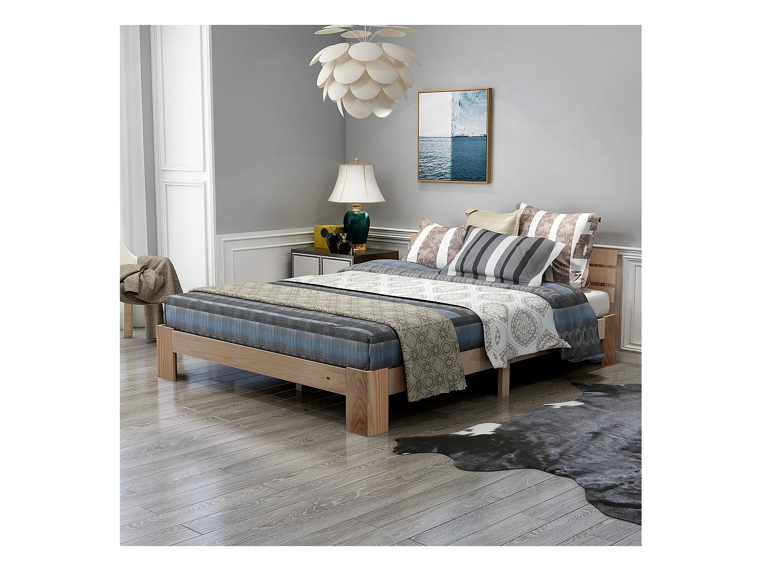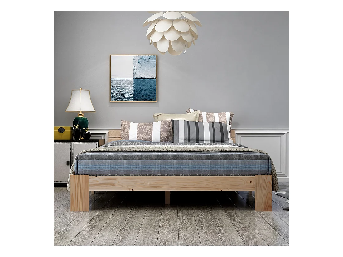 Minimalistisch bed 140x200 cm voor volwassenen met frame van grenenhout, licht natuurlijke houtnerf, zonder matras