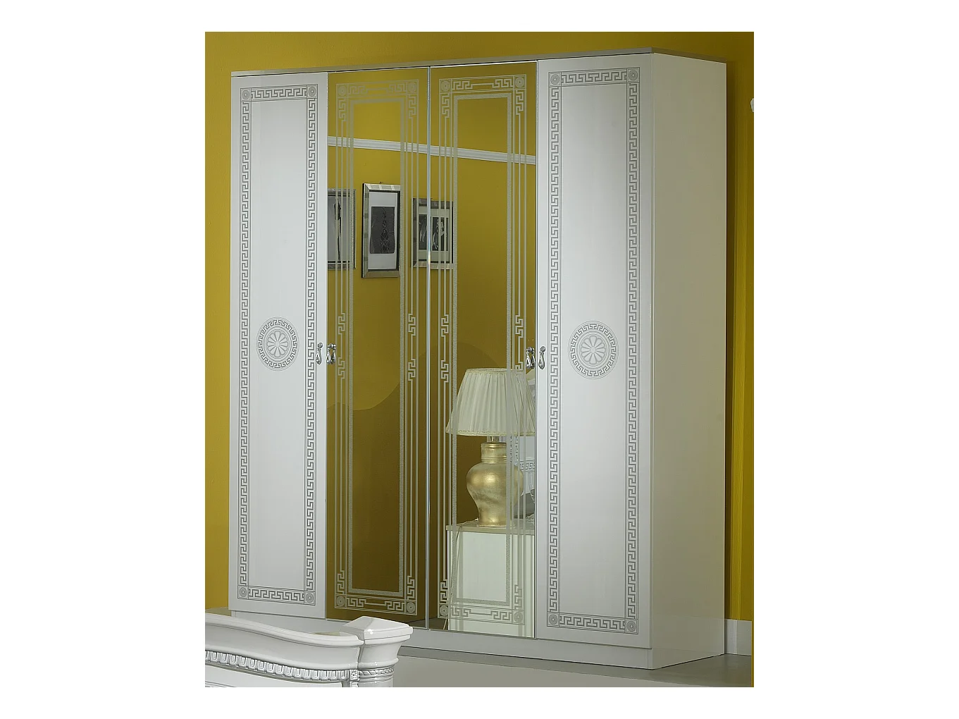 Volwassen kledingkast 4 deuren 2 met Savana wit en grijs gelakte spiegels 181 cm