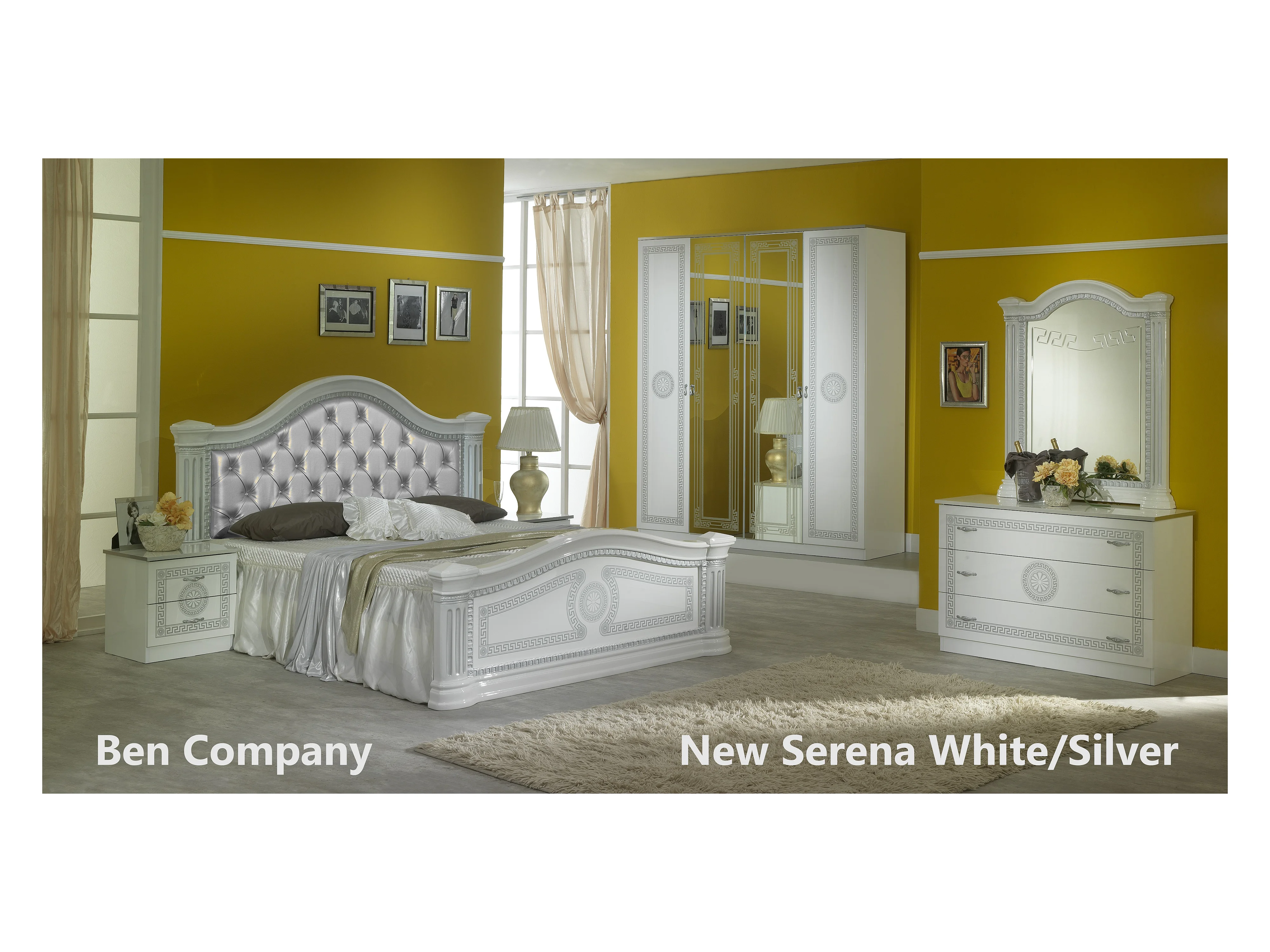 Moderne slaapkamerkast met 4 draaideuren in wit gelakt hout en Mona spiegel 181 cm