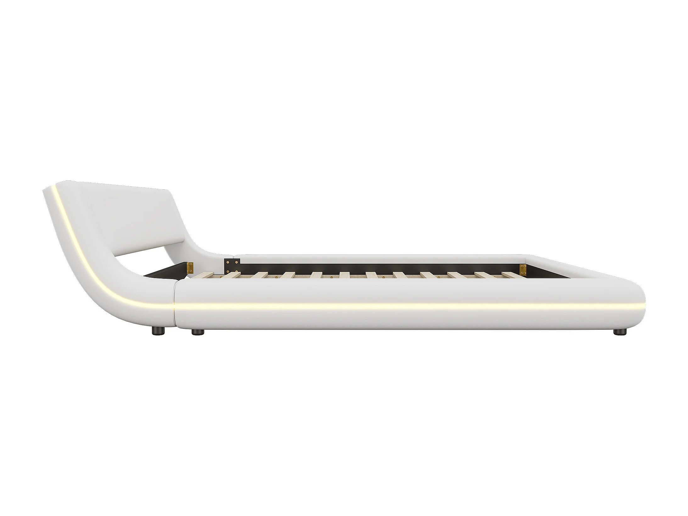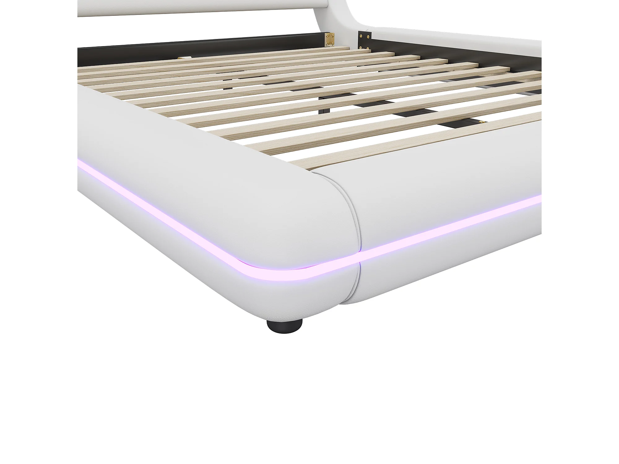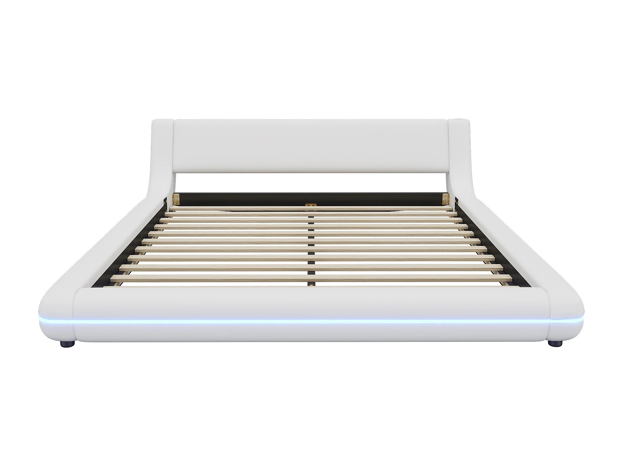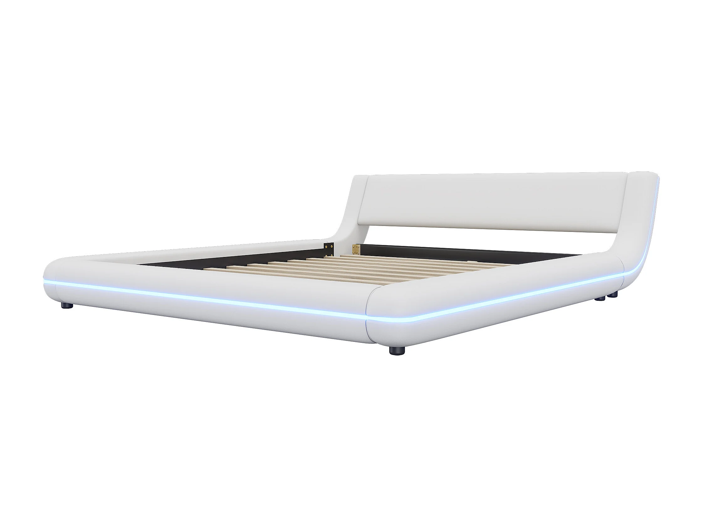 Volwassen tweepersoonsbed 160x200 cm - wit tweepersoonsbed met ledverlichting en lattenbodem - kunstleer