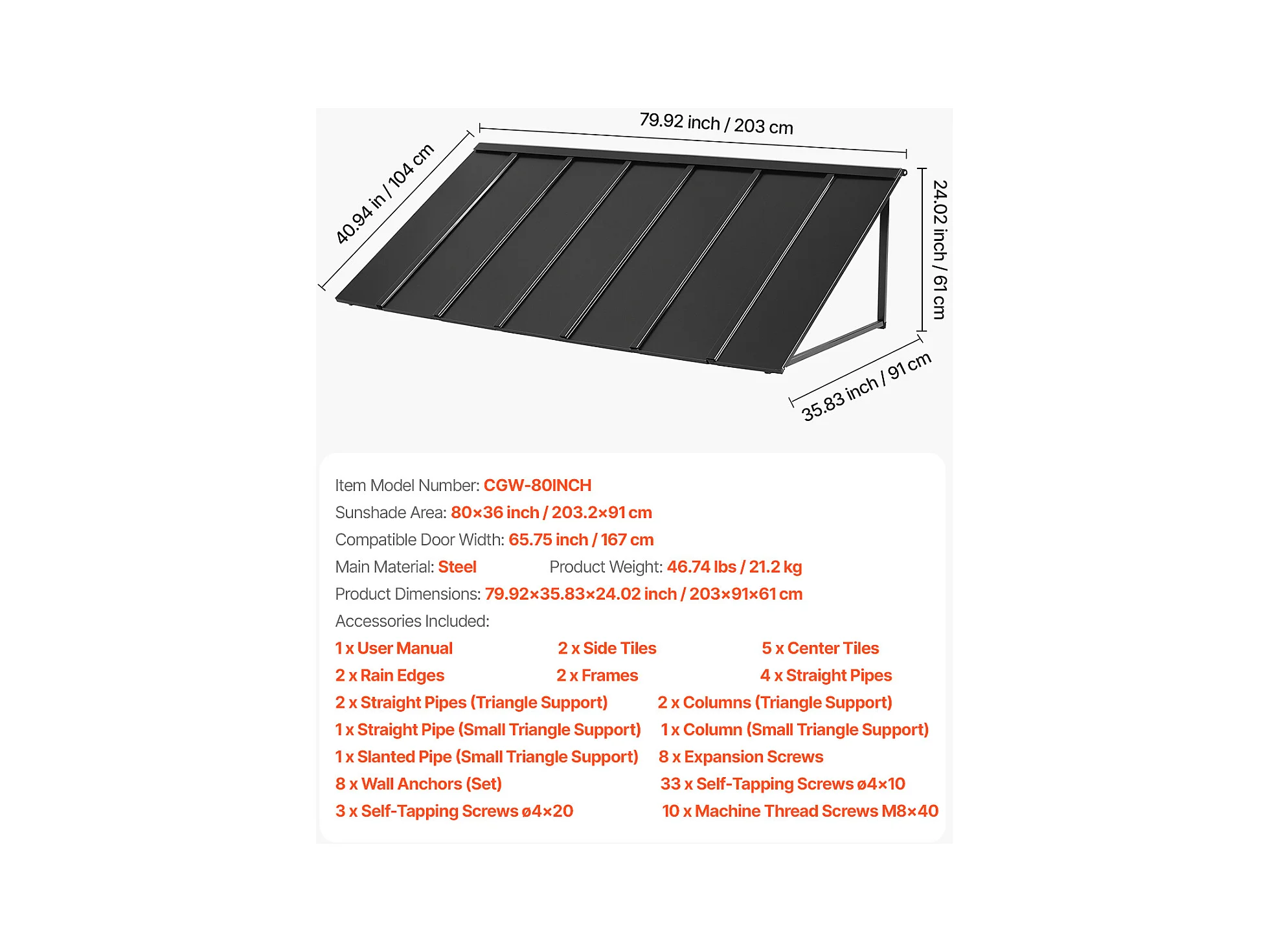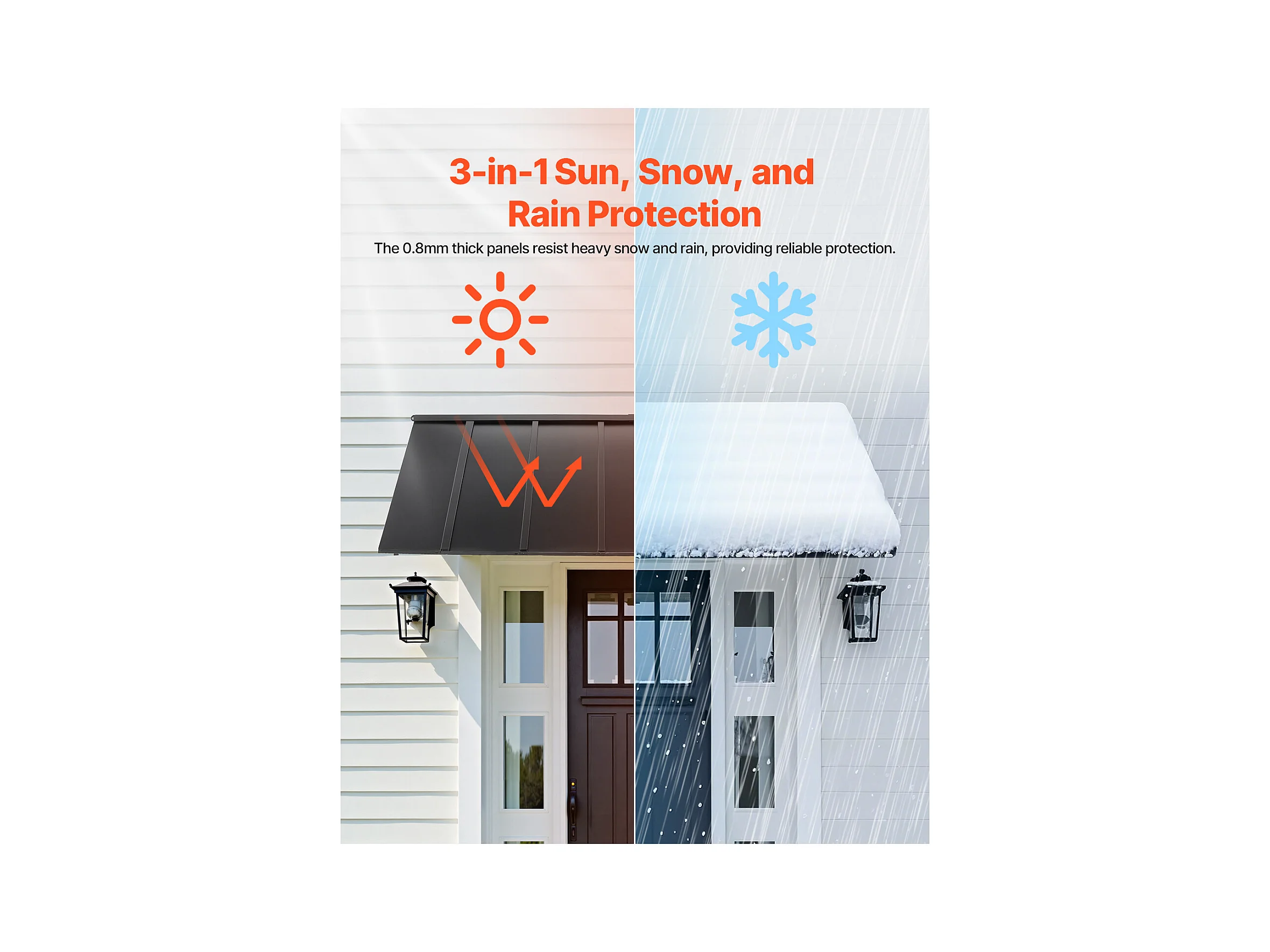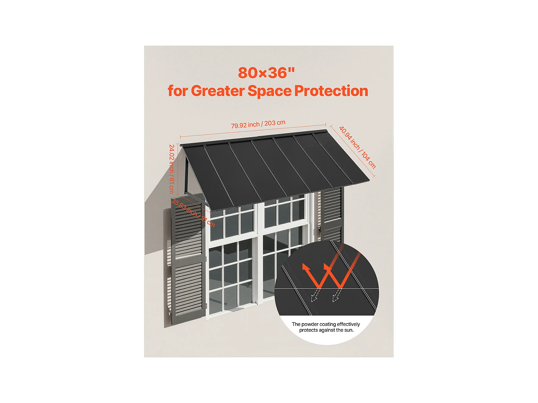 Voordeurluifel SucceBuy, 203x91 cm, Metalen Buitendeurluifel, Stalen Frame, voor Voordeuren, Veranda-ramen en Balkons