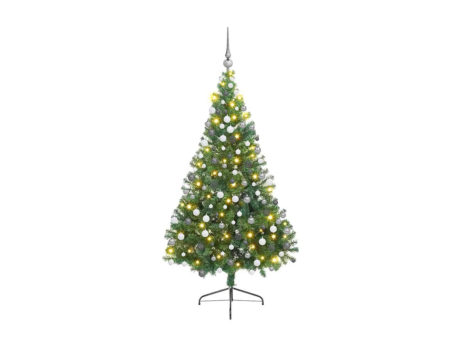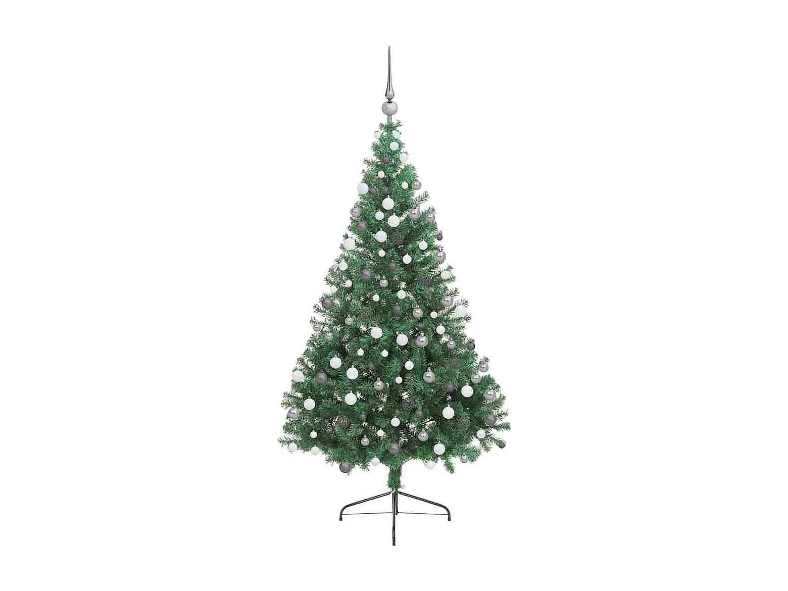 Voorverlichte kunstkerstboom met groene ballen 180 cm PVC
