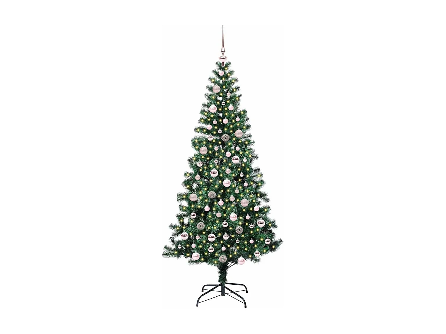 Voorverlichte kunstkerstboom groen 210 cm PVC en metaal