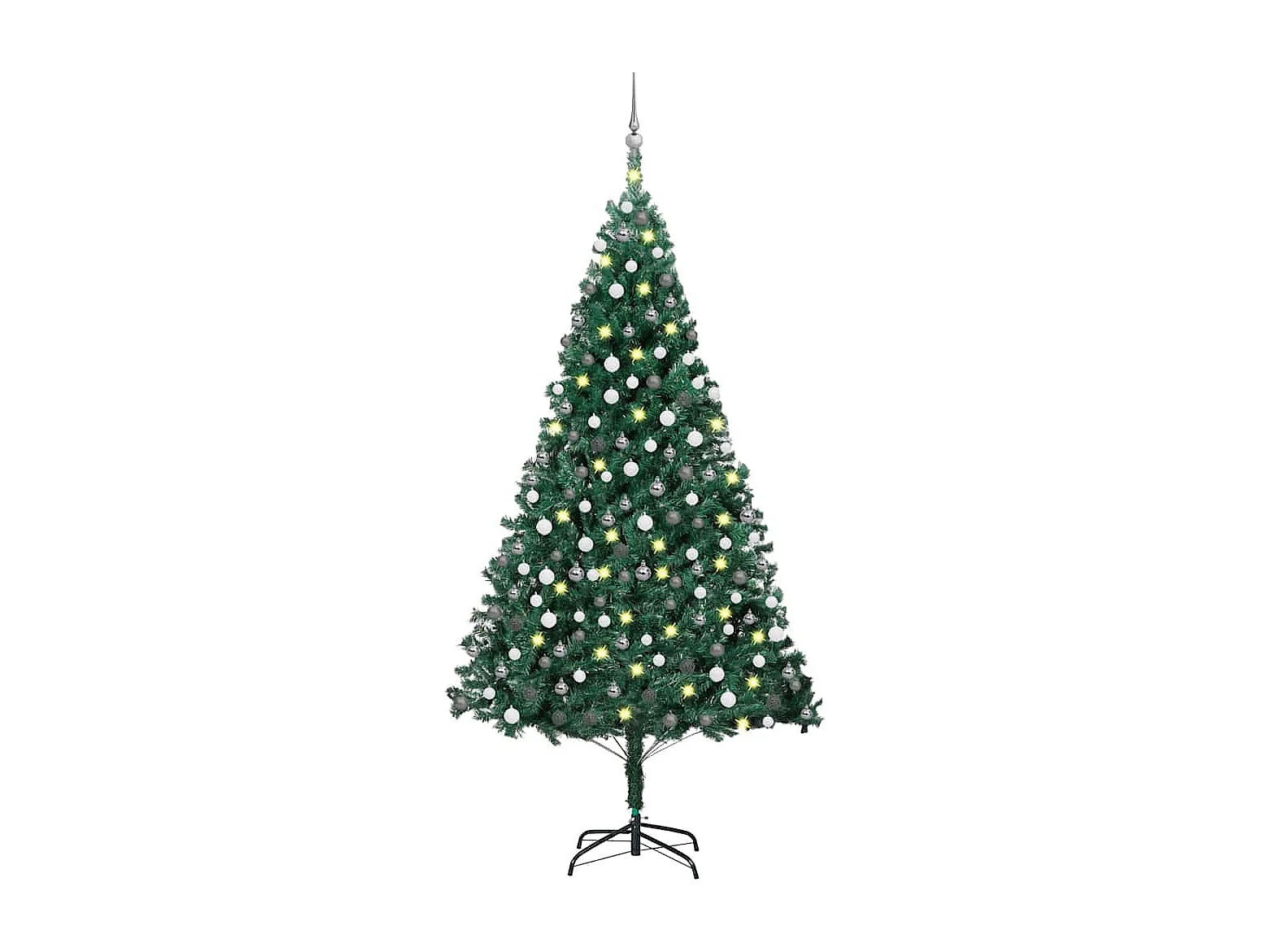Voorverlichte kunstkerstboom met groene ballen 210 cm PVC