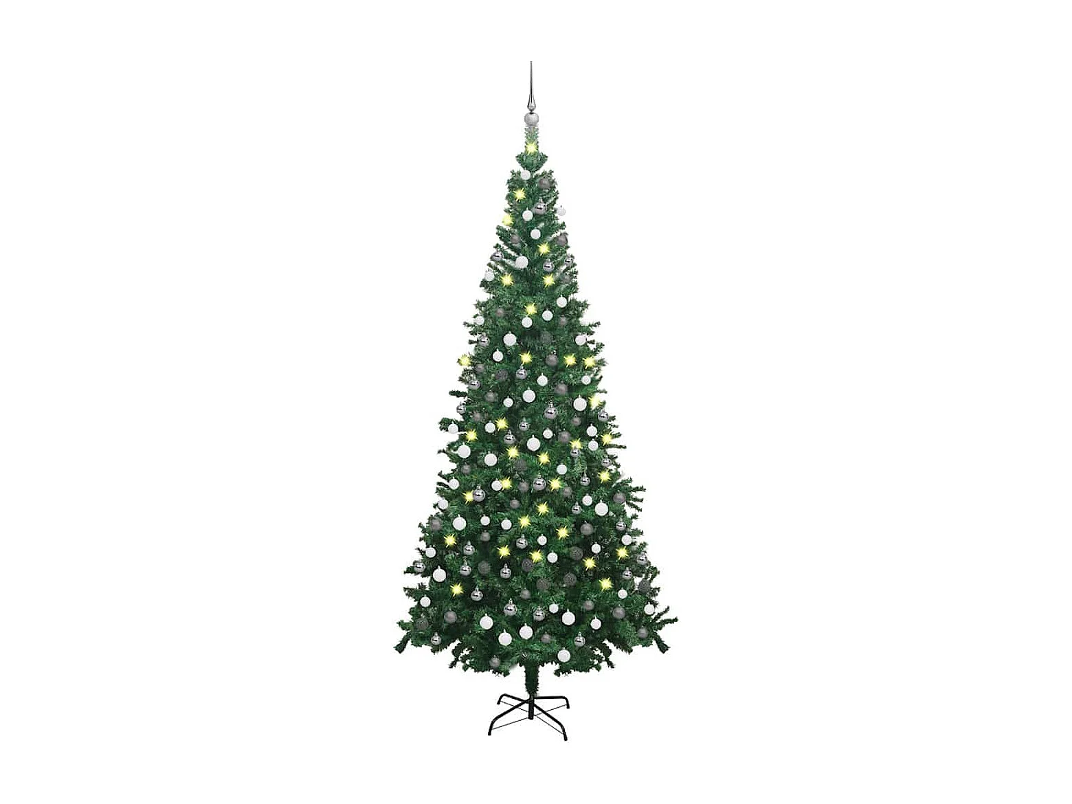 Voorverlichte kunstkerstboom met kerstballen L 240 cm groen