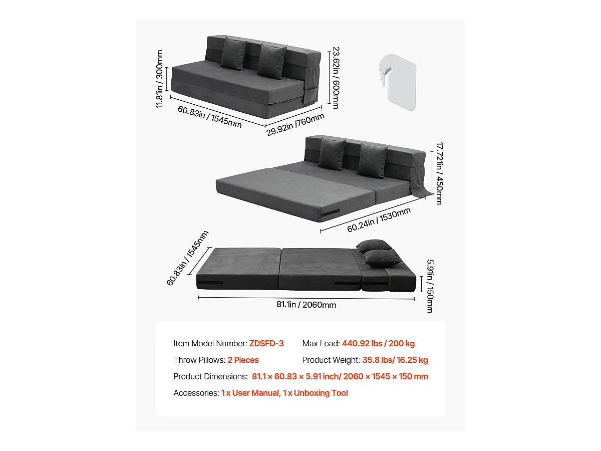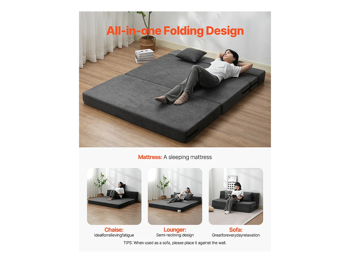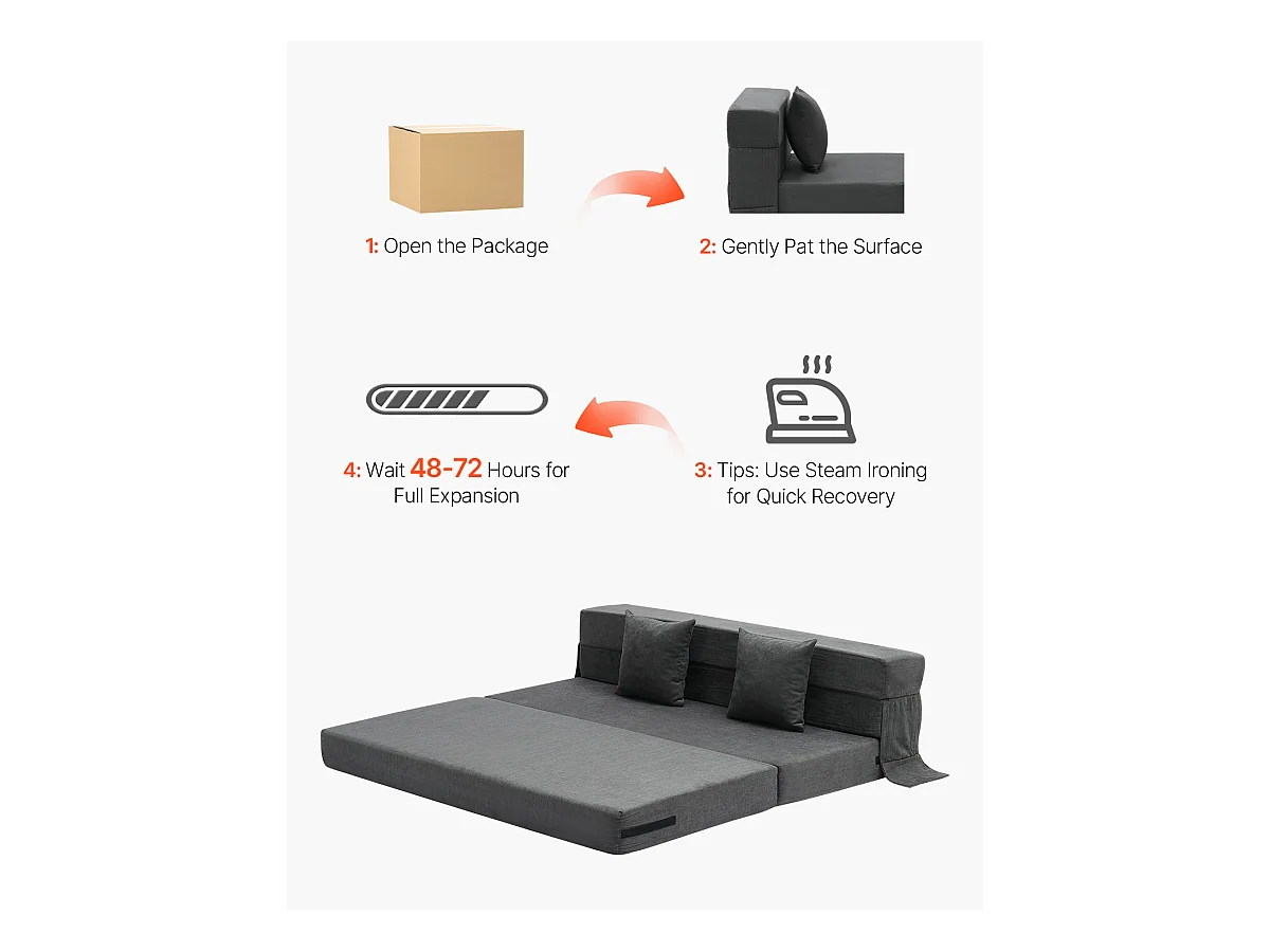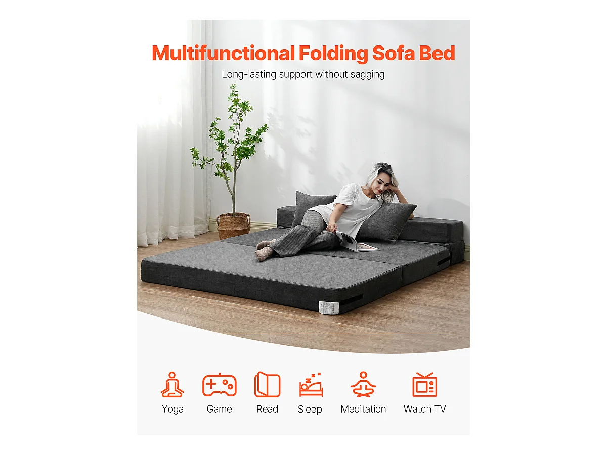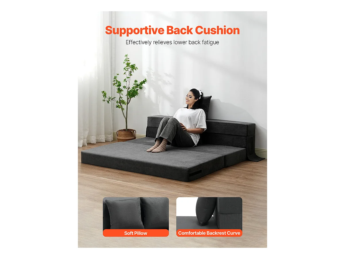 Vouwbare Slaapbank SucceBuy, 3-in-1 met 2 Kussens, Donkergrijs, Queen Size