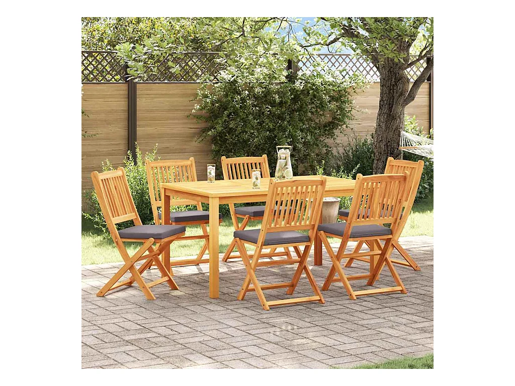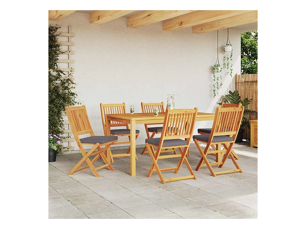 Set van 6 tuinstoelen en kussens van massief acaciahout