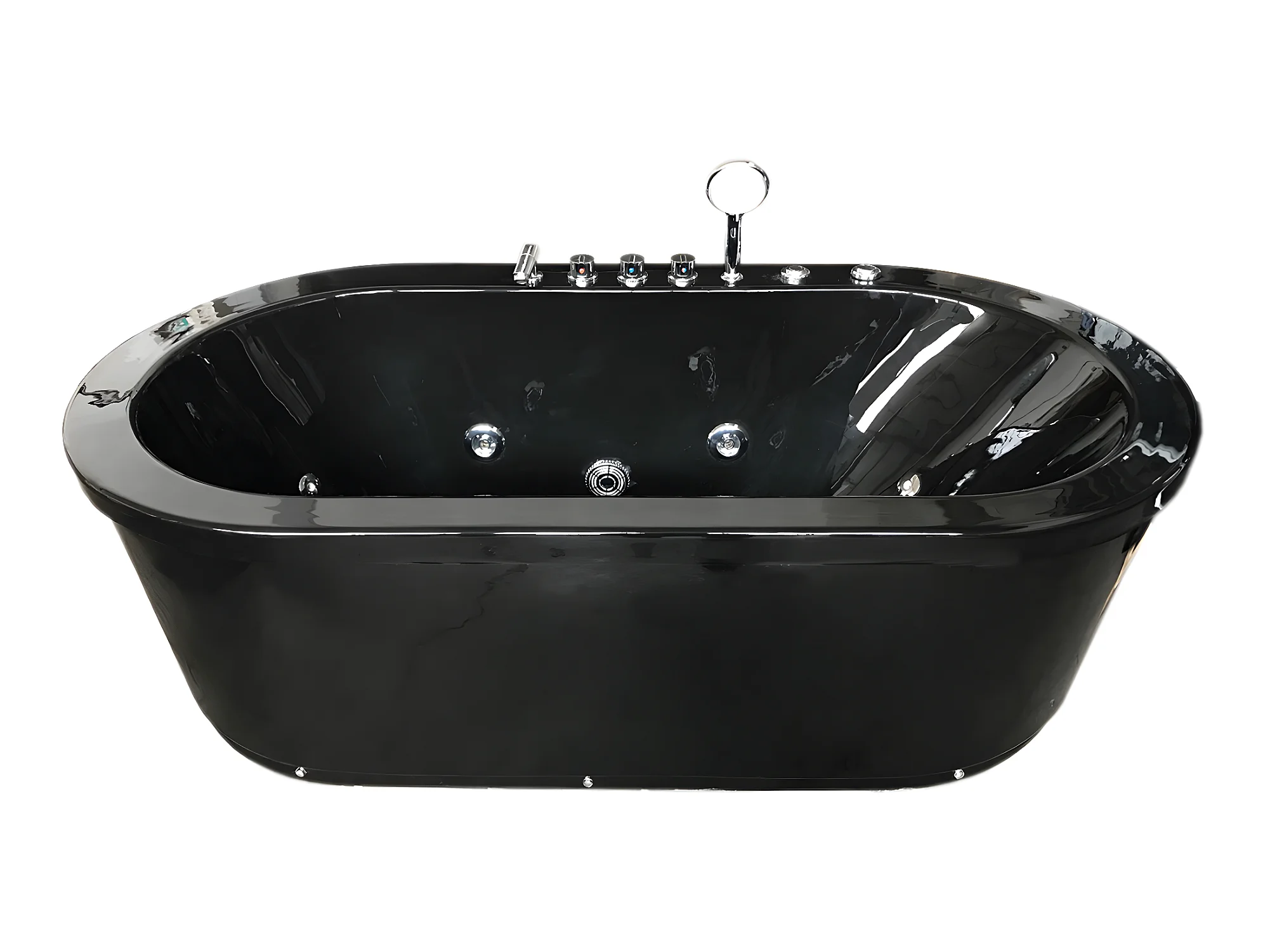 Vrijstaand ovaal zwart whirlpoolbad 185 x 95 cm 10 jets – Berry