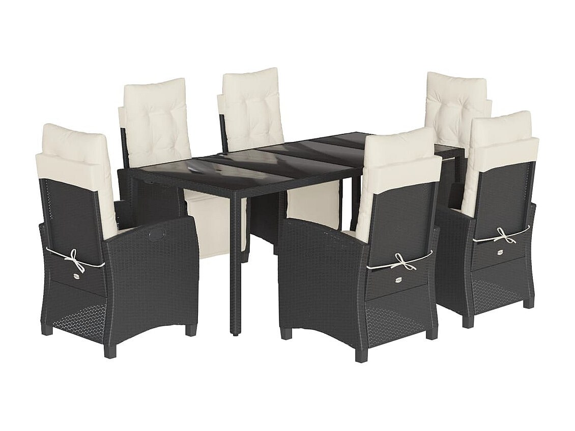 Vrikja 7-delige Tuinset met kussens poly rattan zwart