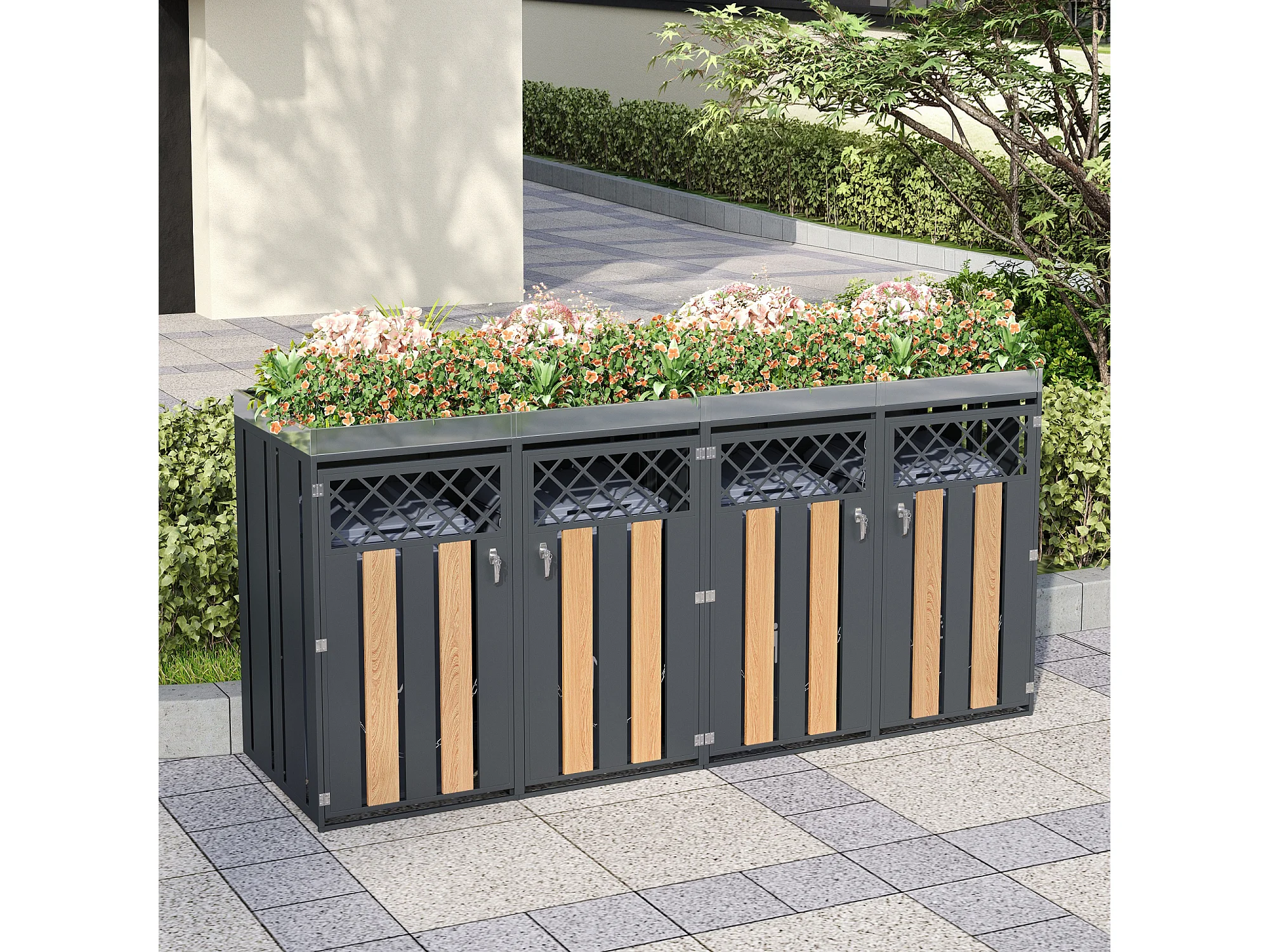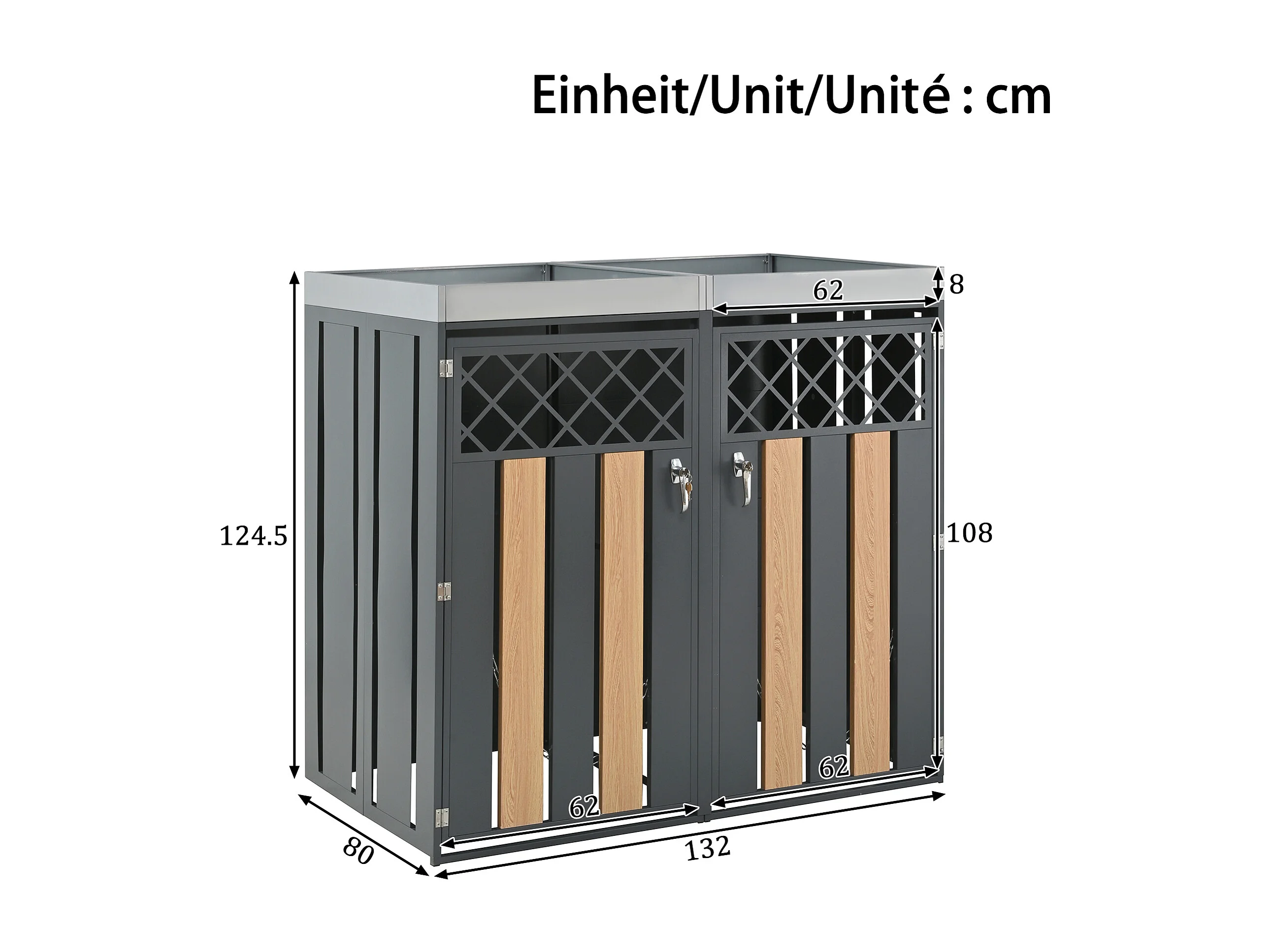 Vuilnisbakkenhuis met ventilatiegaten - 2 x 132 x 80 x 124,5 cm - met 4 deuren - metaal - grijs