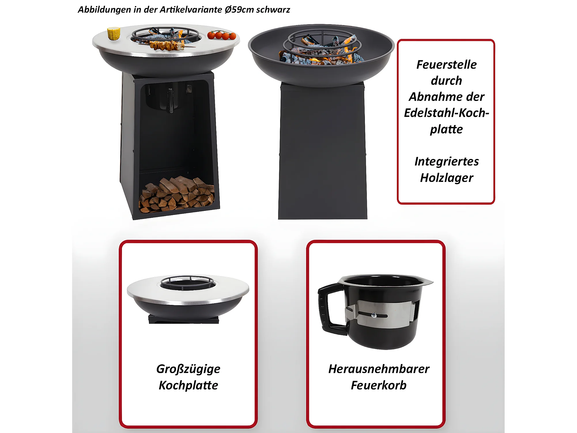 Vuurschaal met grillplaat MCW-K97, Ø66cm zwart