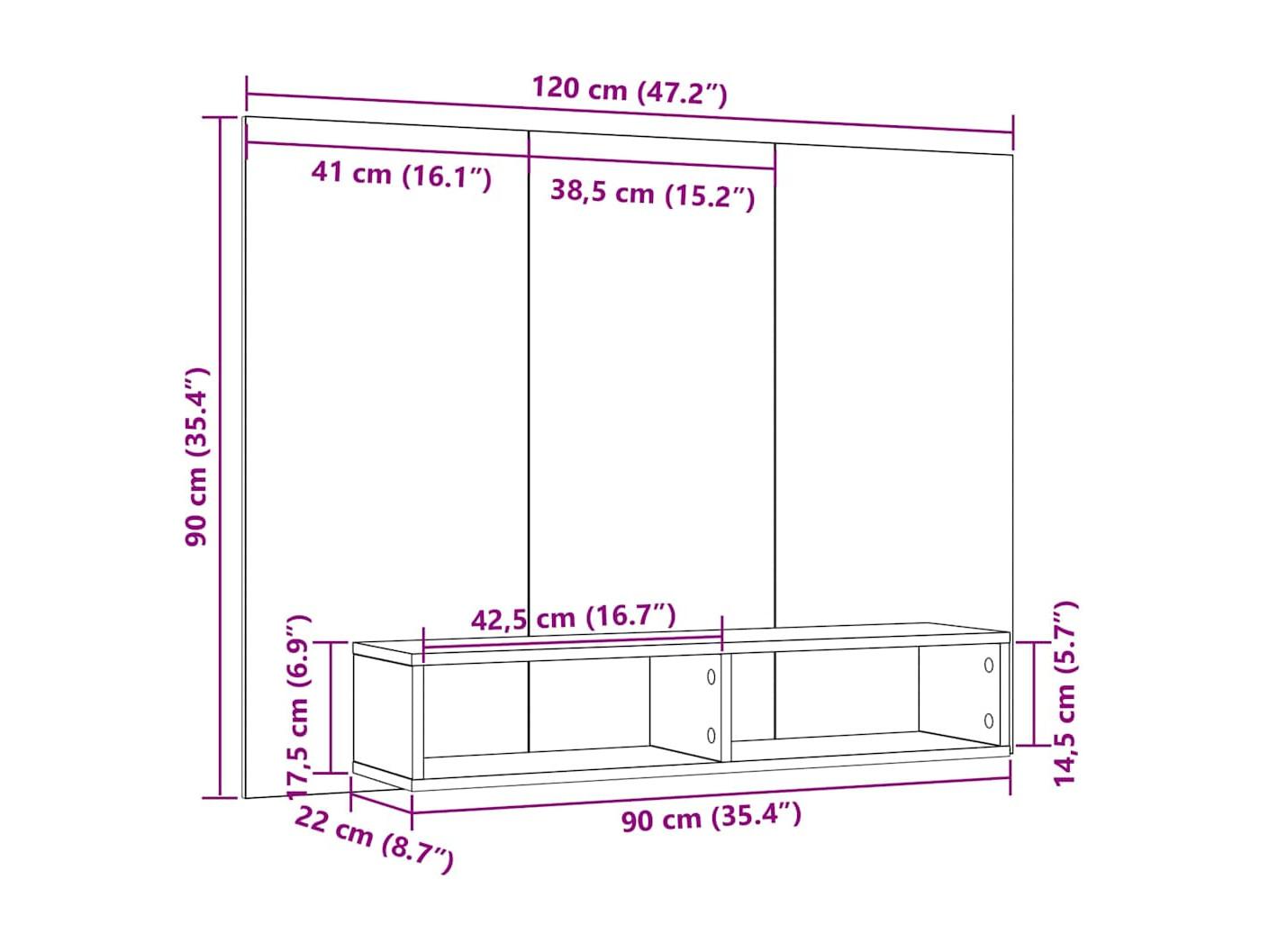 Wand TV Kast artisanaal eikenkleurig 120 x 23.5 x 90 cm