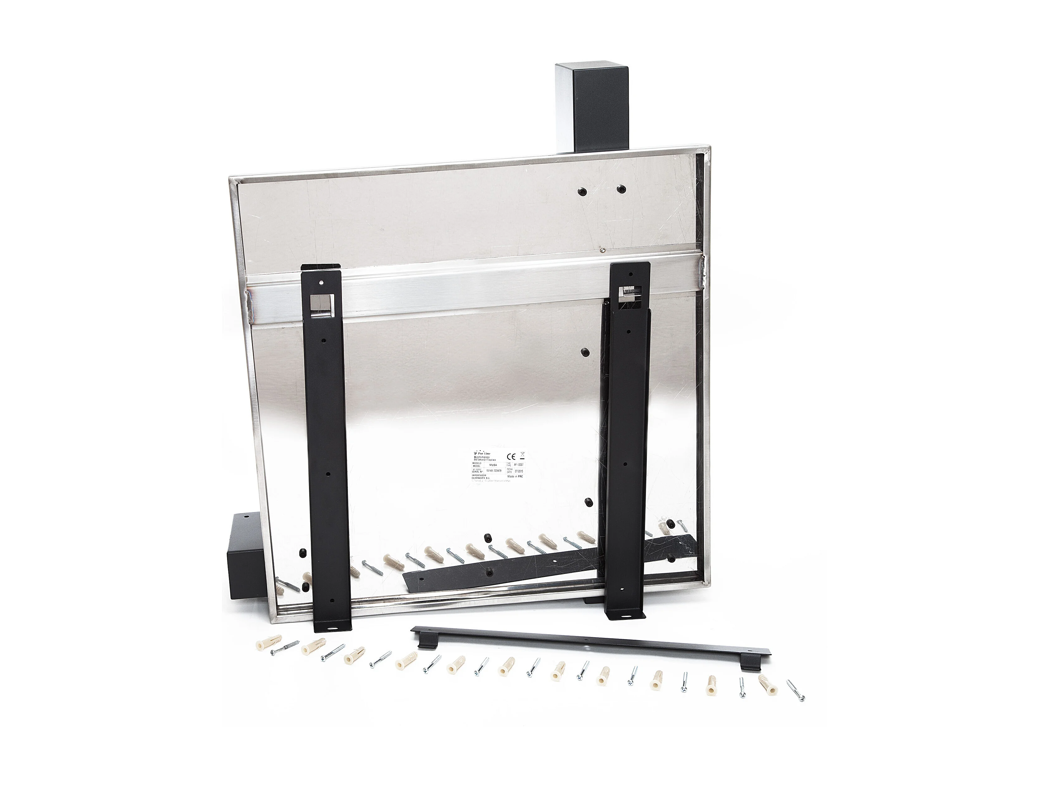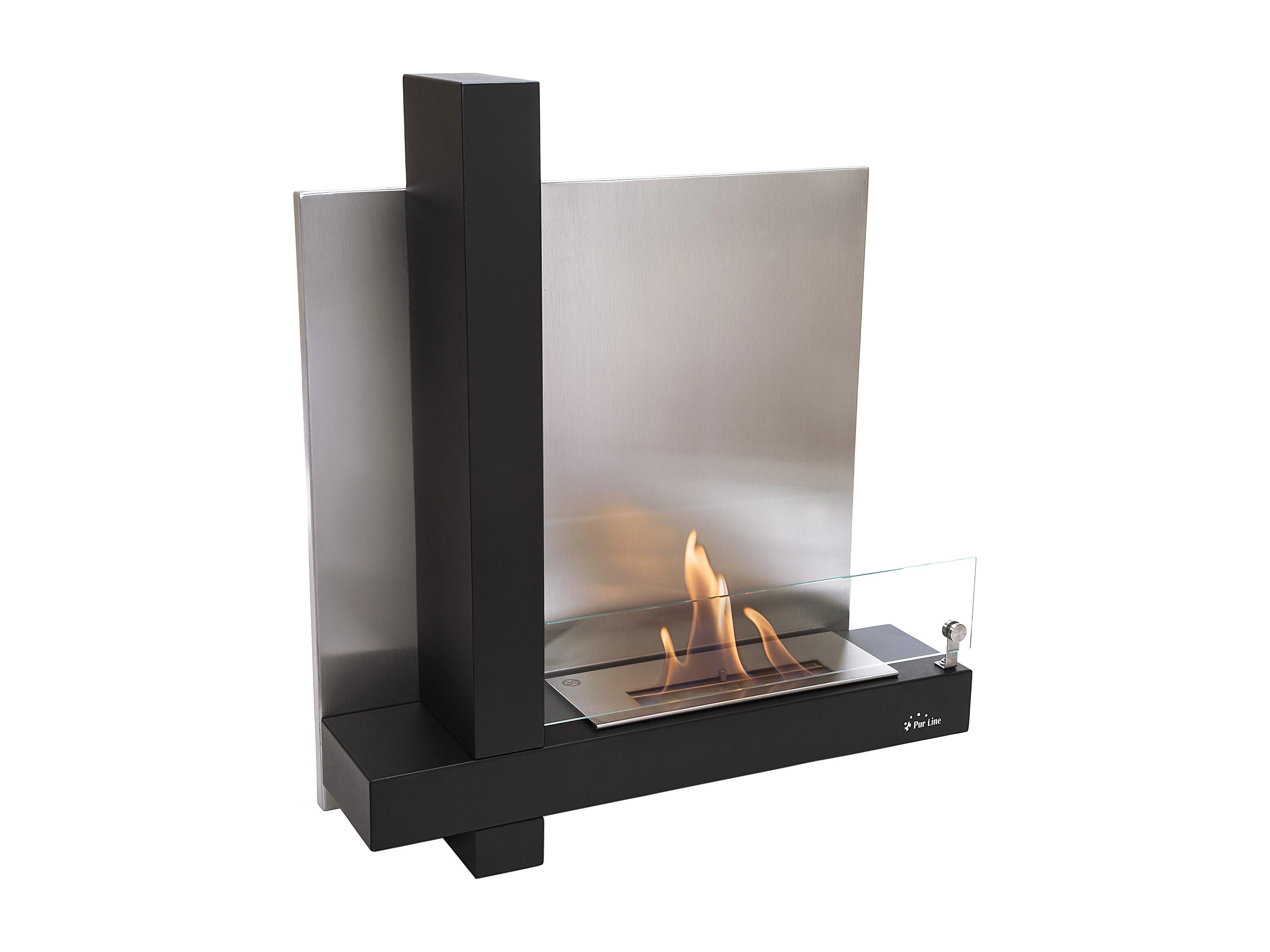 Wandgemonteerde ethanolhaard in zwart roestvrij staal design